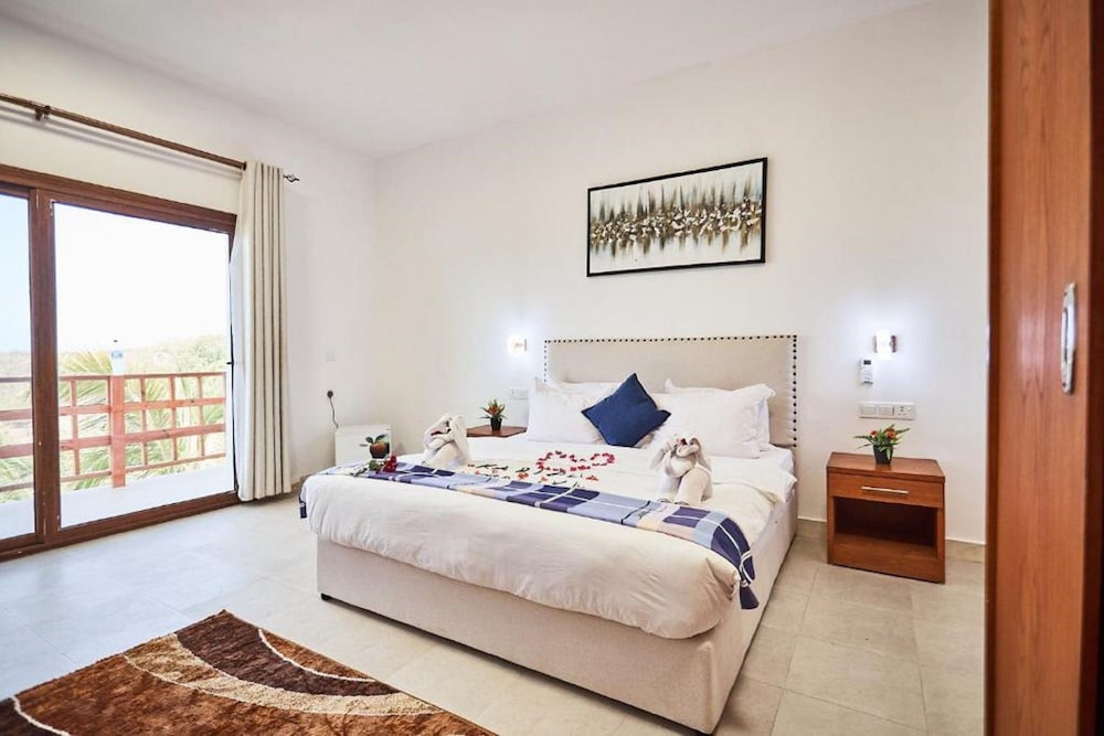 Mr. Khaled who was the hotel manager always helped us and asked if we need any support. He's the best person I have ever seen in a hotel. We also ate at restaurant at nights which costed 15 usd per dish/food, which is a bit high. Staff were always smiling and tried to help. The first day we asked how we can go to beach, the security guard who did not go there before said that we should turn left. We turned left and kept walking, after 40-45 minutes walking we ended up in a different beach, we should have turned right after 2-3 mins walking but we were not informed about it. So, we walked inside a village and it was a bit tiring. You may see a few dogs in streets, but they do not attack people. The area is mostly safe and the hotel price is cheap considering that area. Thanks to Mr. Khaled again who does his best in the hotel. There's no elevator, you may need to walk 3-4 stairs but that's not a big deal. There were nice trees and pool in the hotel.