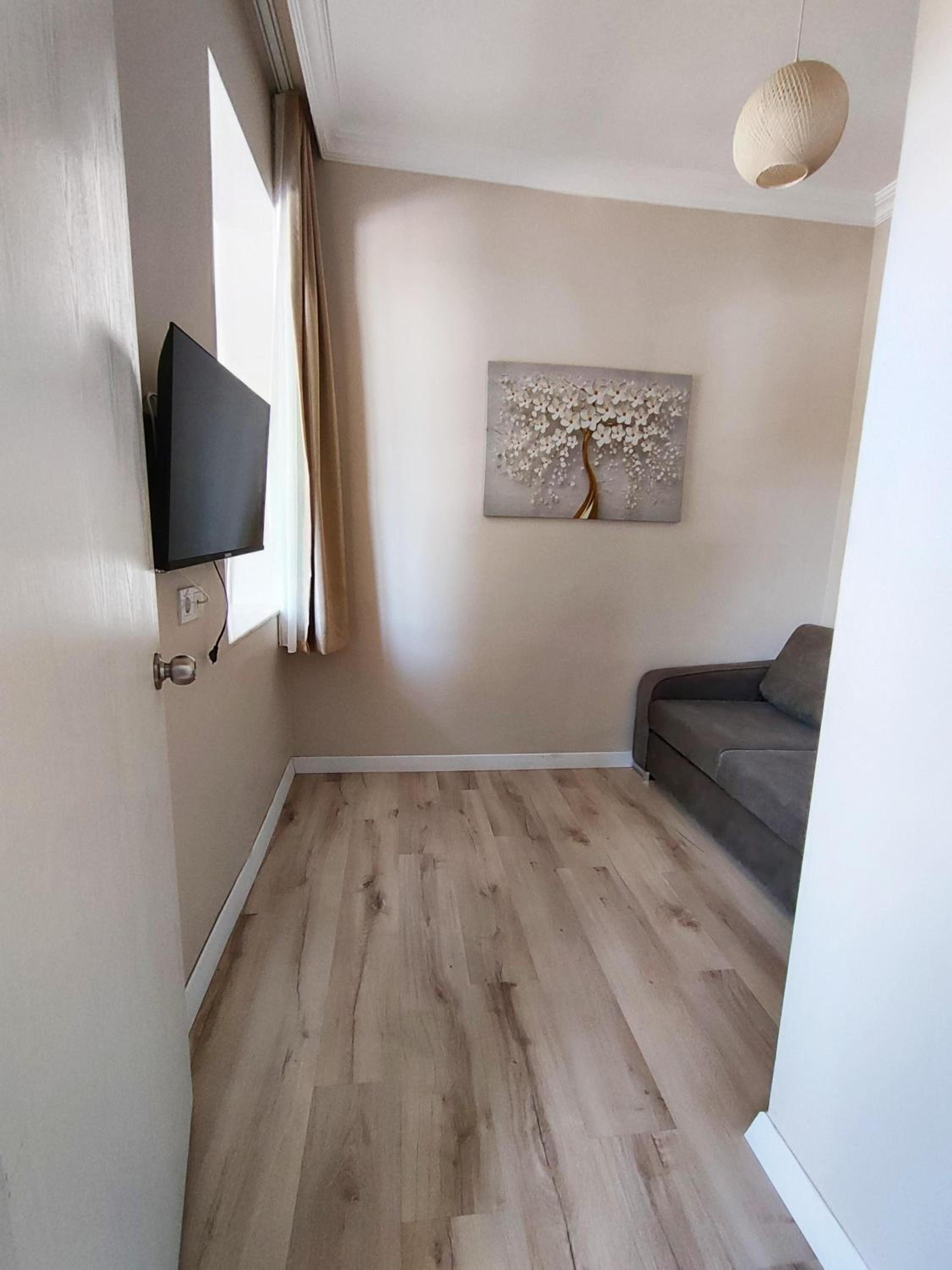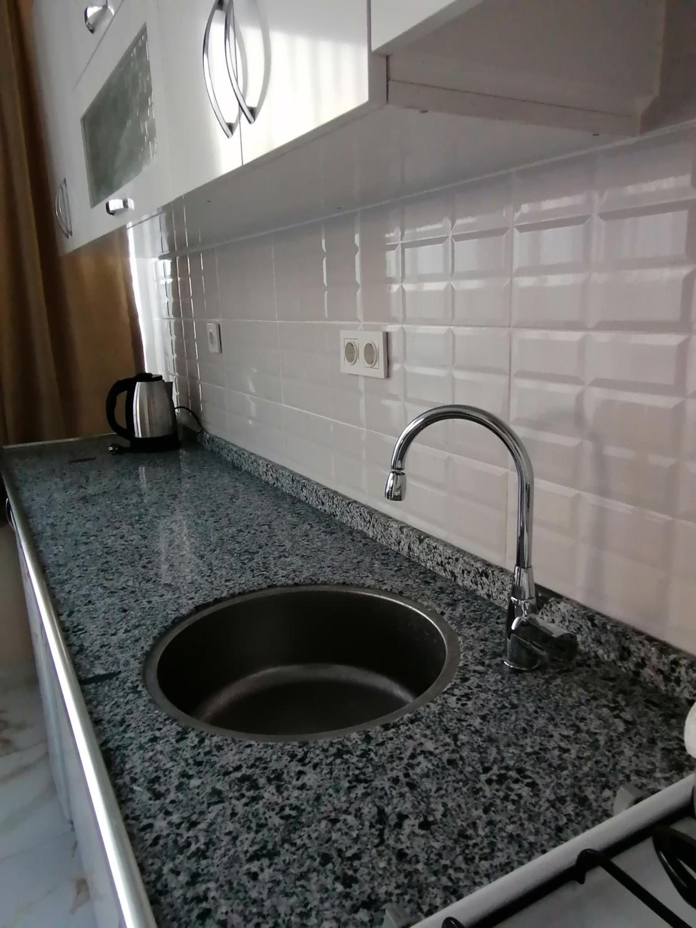 Расположение супер, пляж 6 минут, многочисленные кафе, рестораны, маркеты, остановка за углом. Чистый номер, чистое постельное, чайник, чай, сахар.