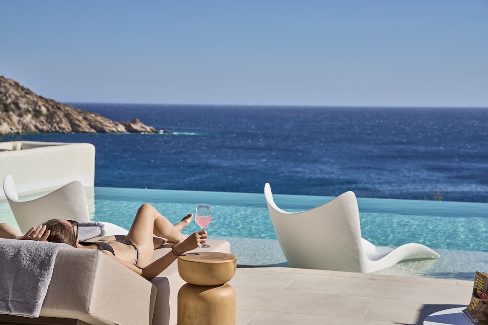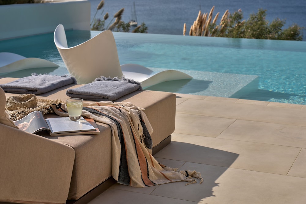 Experience beachfront luxury at Ios Grand Pool Suites - your perfect getaway awaits.