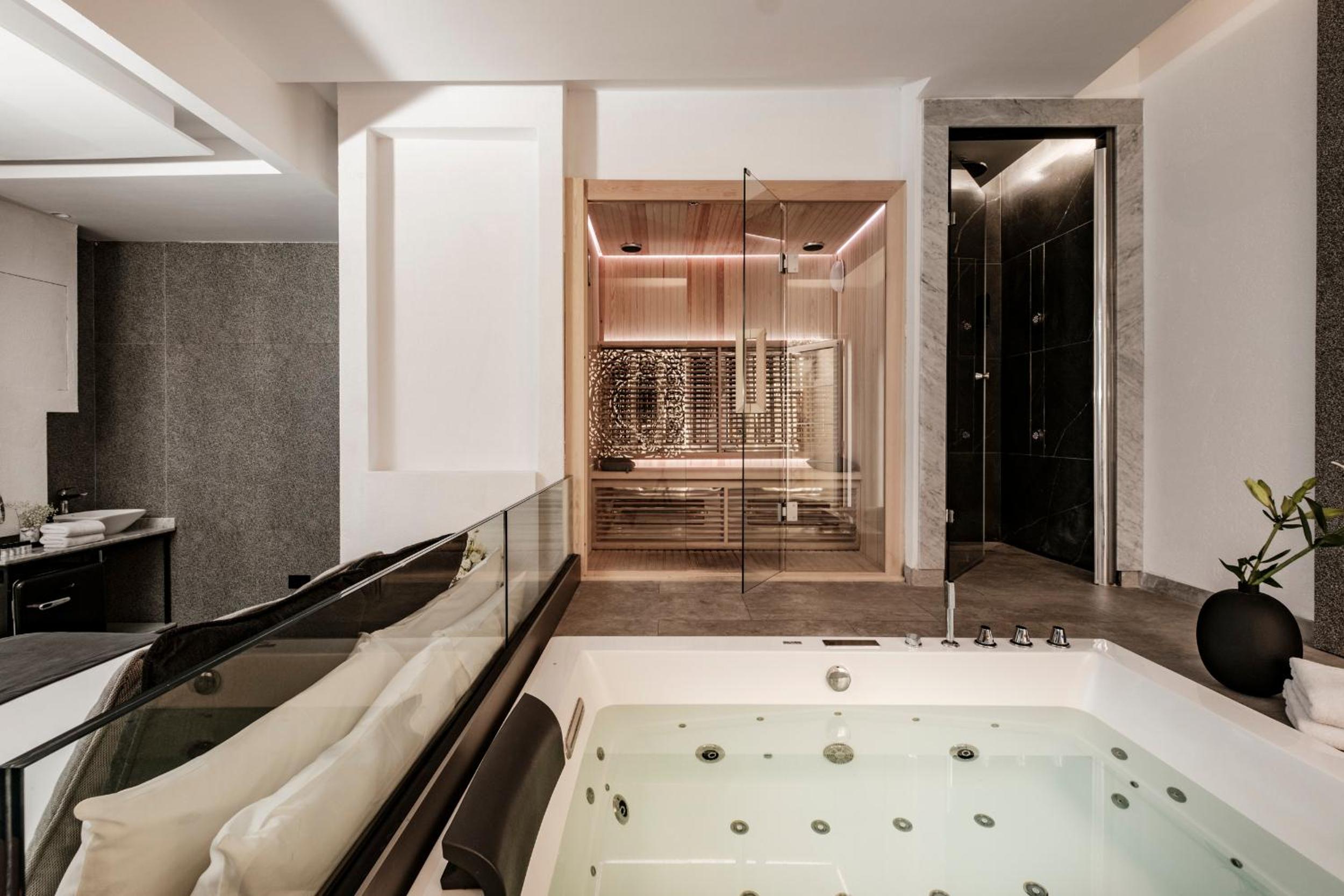 Das Zimmer mit Whirlpool auf der Terrasse war top! Das Pool beheizt und sehr gemütlich. Das Frühstück im Erdgeschoss sehr stilvoll präsentiert und tolle Auswahl.