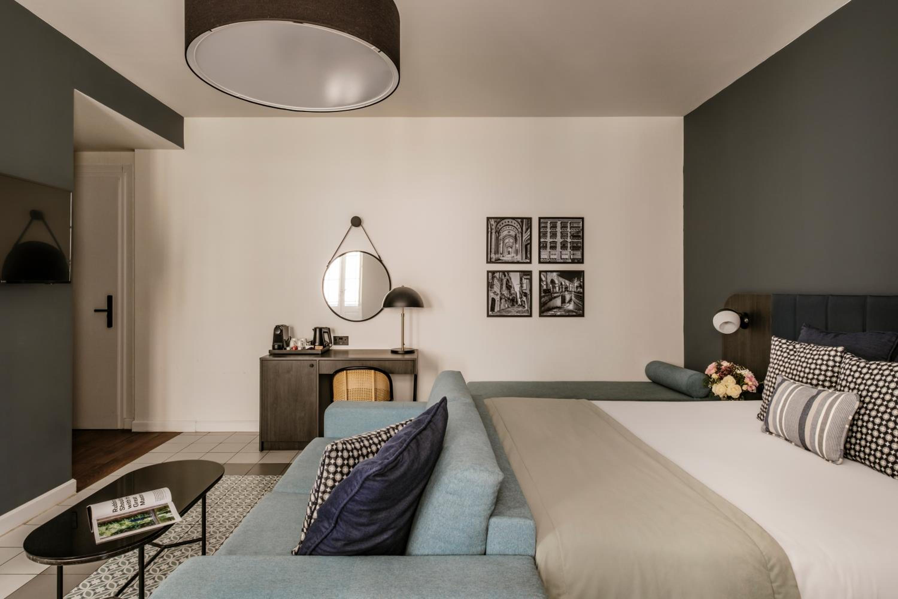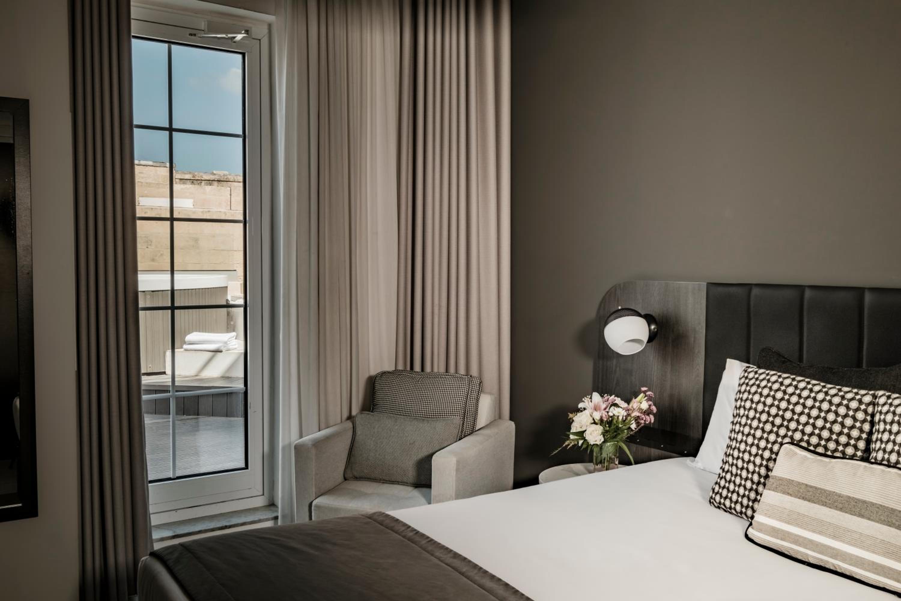 Palazzo Ignazio in Valletta offers air-conditioned rooms with modern amenities, including a coffee machine, minibar, and flat-screen TV. Some rooms even boast balconies with stunning city views. The hotel ensures a comfortable stay with attentive room service and cozy bed linens.