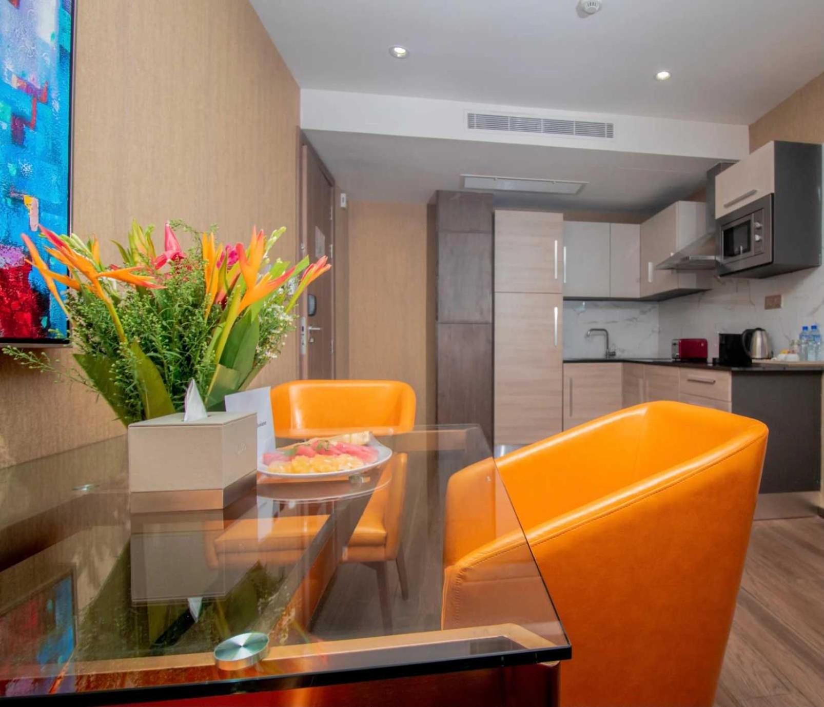 Bien situé près des centres d'affaires l'appartement était grand et propre. Service de chambre rapide mais le renouvellement des produits de salle de bain un petit peu économe. Odeur de cuisine le matin étant au 8 ième étage étrange ! 2 Ascenseurs seulement lorsqu'un des deux est défectueux c'est long.