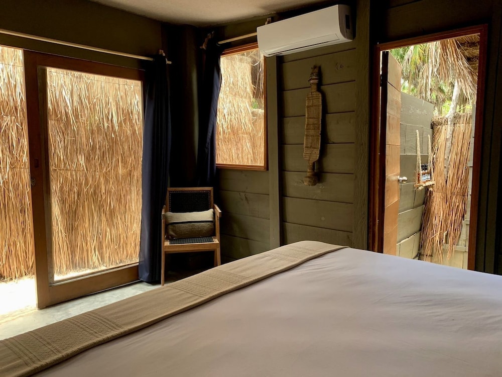 Nydelig lite hotell på stranden lengst sør på Tulum beach, i naturreservatet. Trenger ikke sko, går i sanden. 7 små hytter, 14 sengeplasser. Veldig koselig. Stille og rolig.