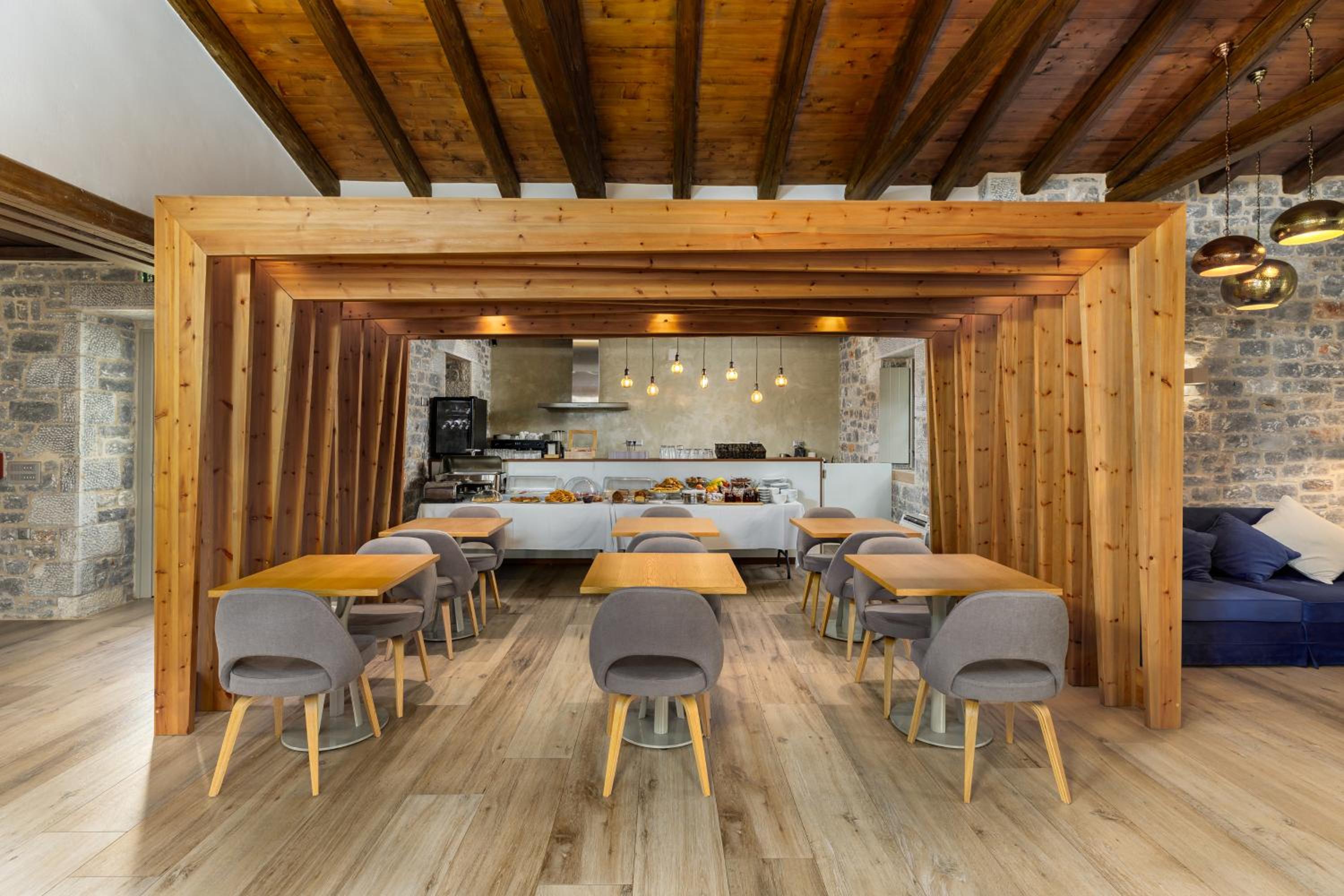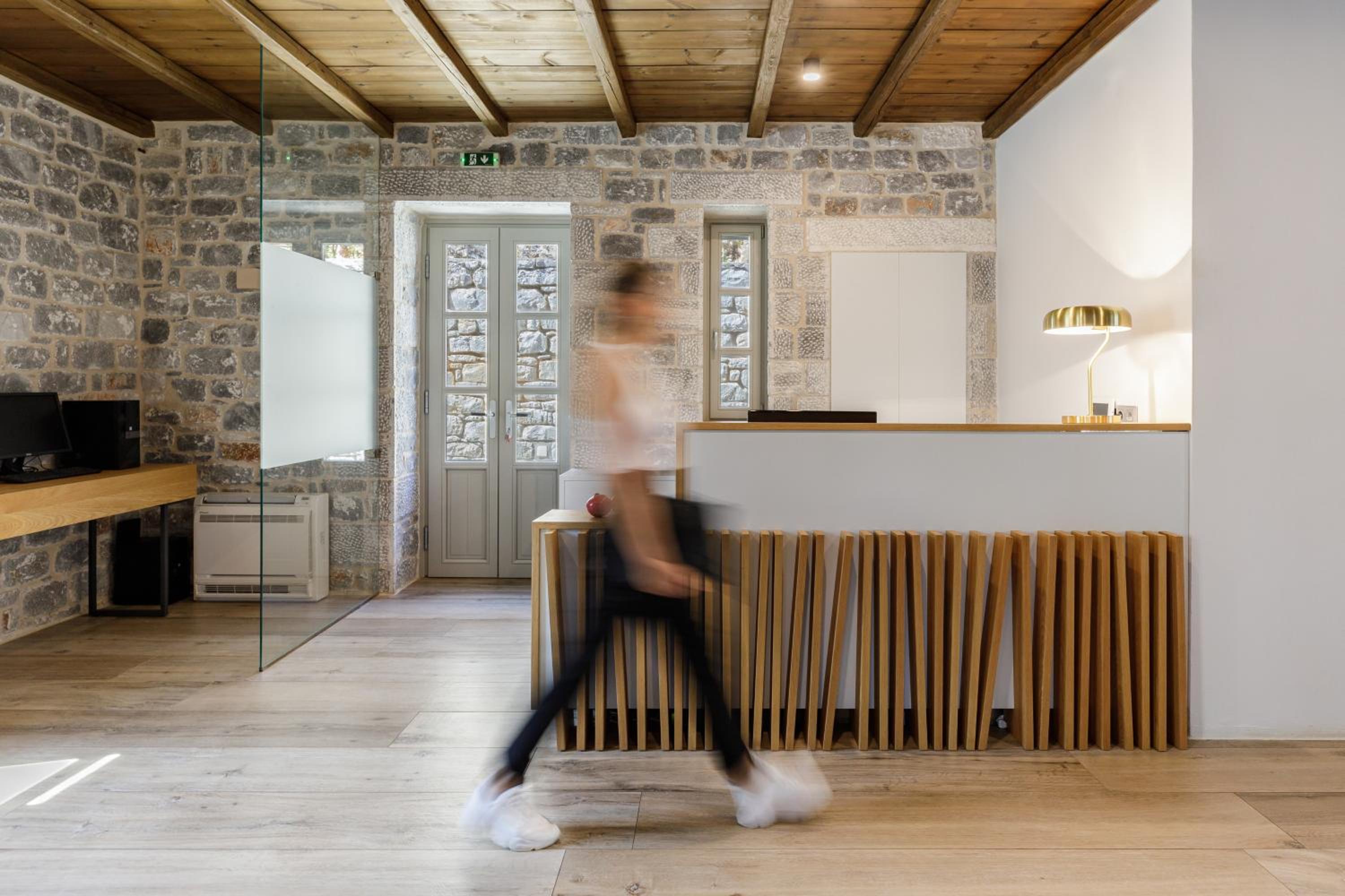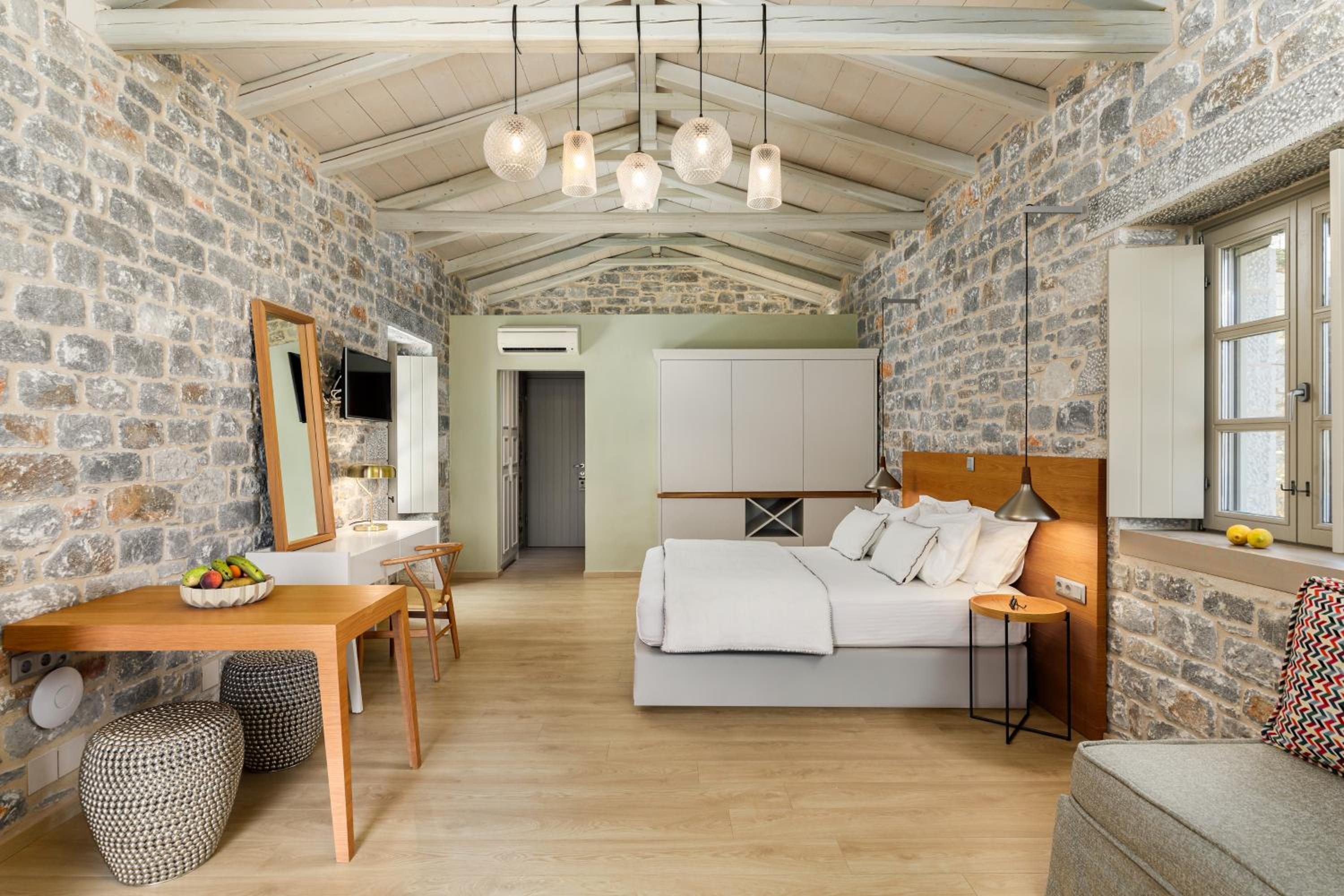 Stunning views from the room and from the terrace; spacious, new, fully-equipped and very clean room; very comfortable bed; helpful staff ready to attend to guest requests; excellent breakfast inspired by Greek cuisine; easy check-in.