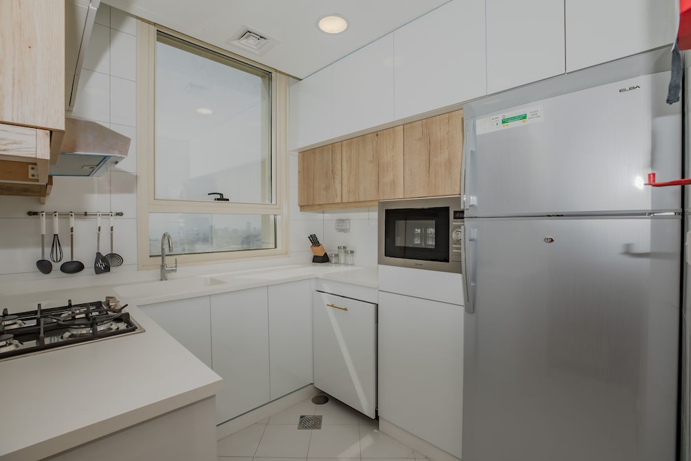 Excellent hotel above my expectations, well equipped clean and convenient kitchen, spacious room, clean and convenient bathroom. Professional, helpful and friendly staff. The hotel not far from shopping center and beautiful sea beach. There are well equipped gym and swimming pool at the last floor of the hotel.