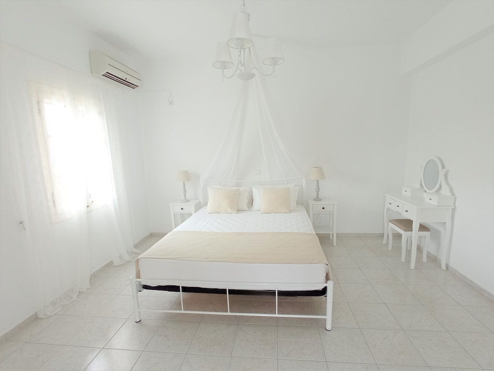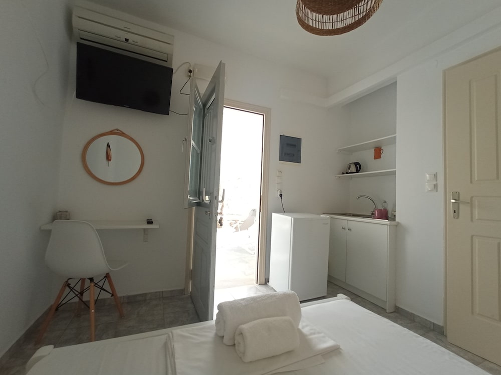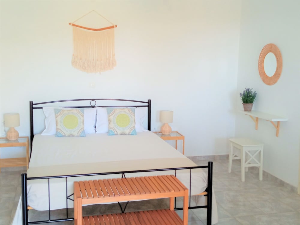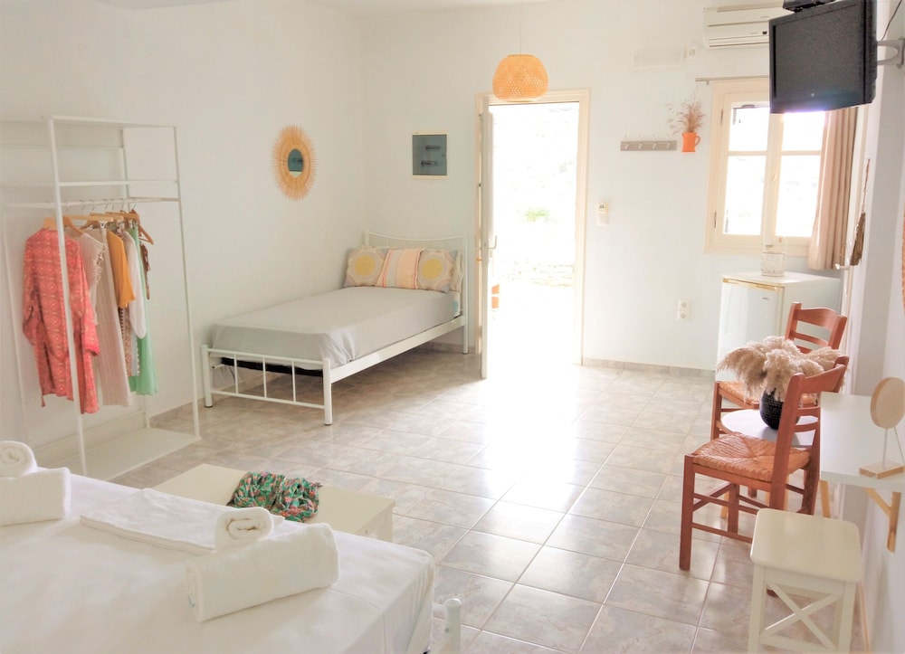 Nice family hotel with great hosts. The rooms are spacious and tided up every day. The swimming pool is a big plus and the view to Platis Gialos and the sea is breathtaking. The breakfast is with homemade cookies, jams, pies and cakes. We have really appreciated the hospitality of this place, the kindness and generosity of the hosts and the location. It is not far from Platis Gialos and it offers moments of calm, an incredible view and the proximity with the bars and restaurants (on foot and by car). Certainly a place that we recommend and gladly go back!Thank you so much Evi and Athina for making our stay a unique experience!
