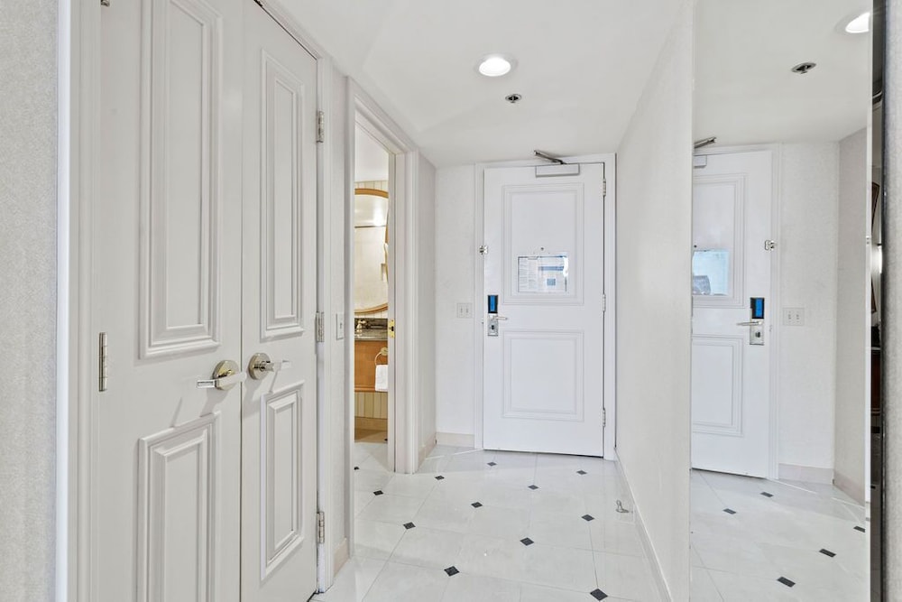 Room was clean. Check in process required ID plus selfie video. Hallway rugs had pet stains everywhere. Elevator and hall outside elevators had blood smeared on controls and window in hallway...for 2 days. Arcade and racetrack close, not 24 hours. Parking is not included with the additional $160 resort fee added to room cost.