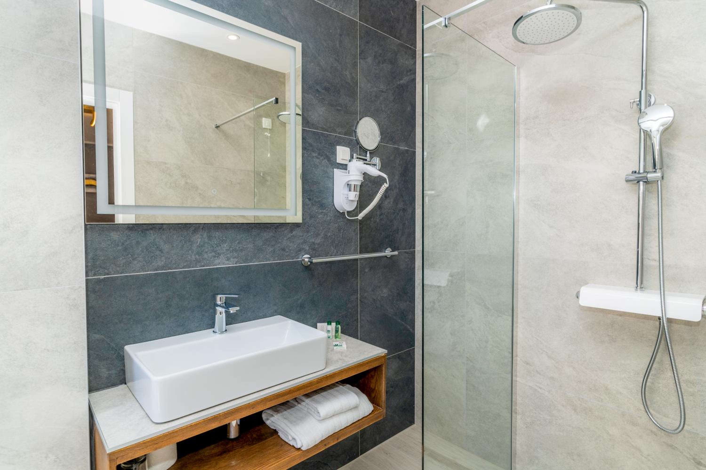 Izuzetno udoban mali hotel, pruža svu uslugu ali i mir i odmor. Za osobe koje ne vole gužve, jako preporučam. Osoblje je izuzetno ljubazno, uslužno, komunikativno, spremni uvijek pomoći. Sobe su lijepo uređene, kupaona moderna. Doručak pruža za svakog ponešto i dovoljno.. Hotel je smješten na samoj plaži, na minutu od centra. Uvijek ću se rado vratiti.