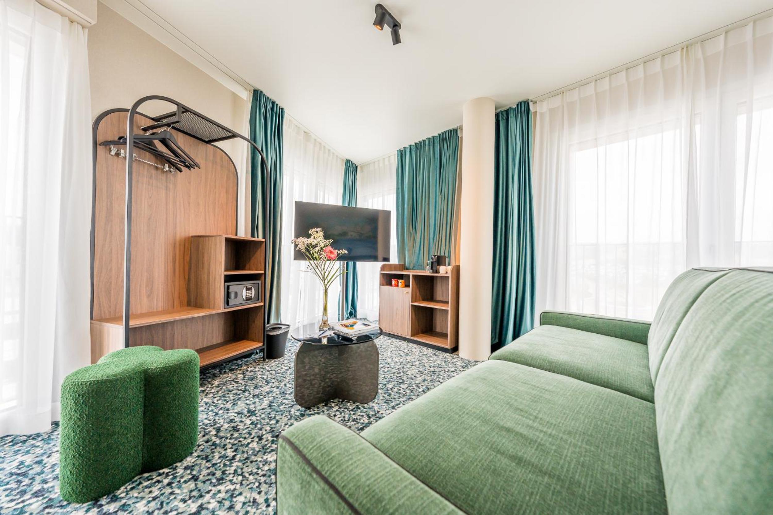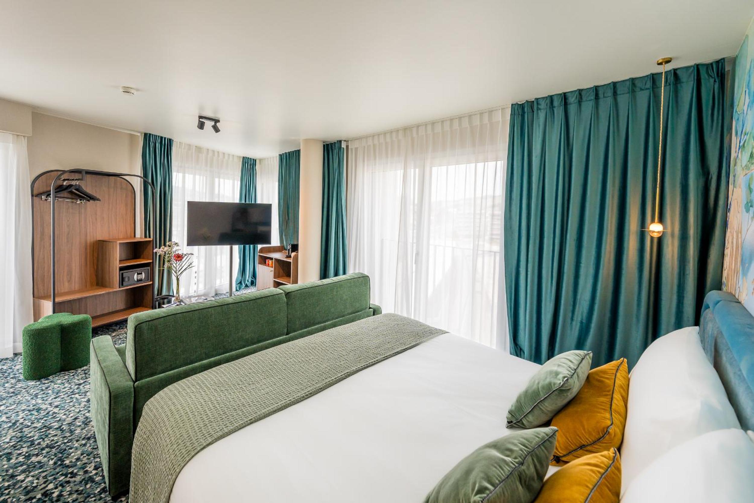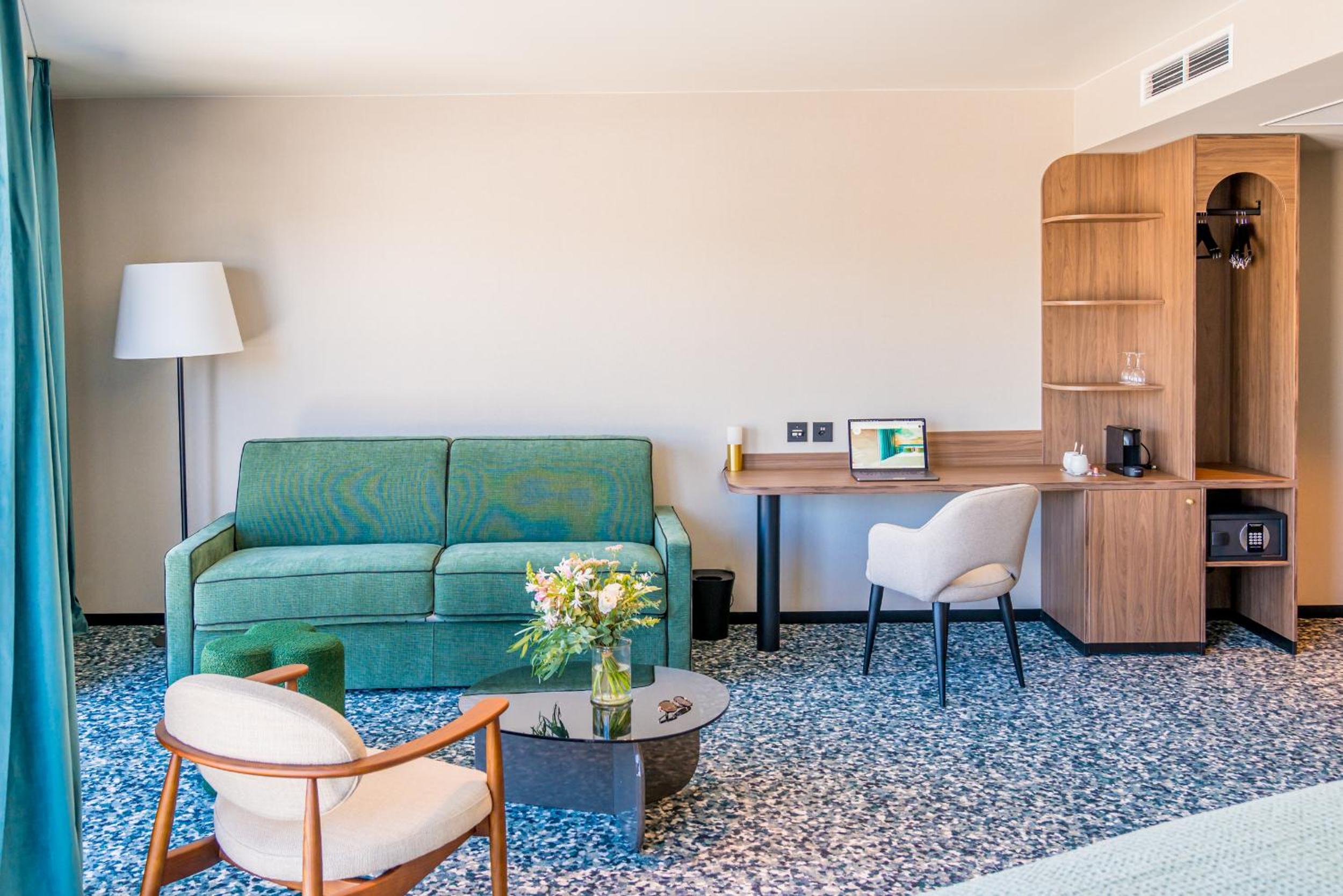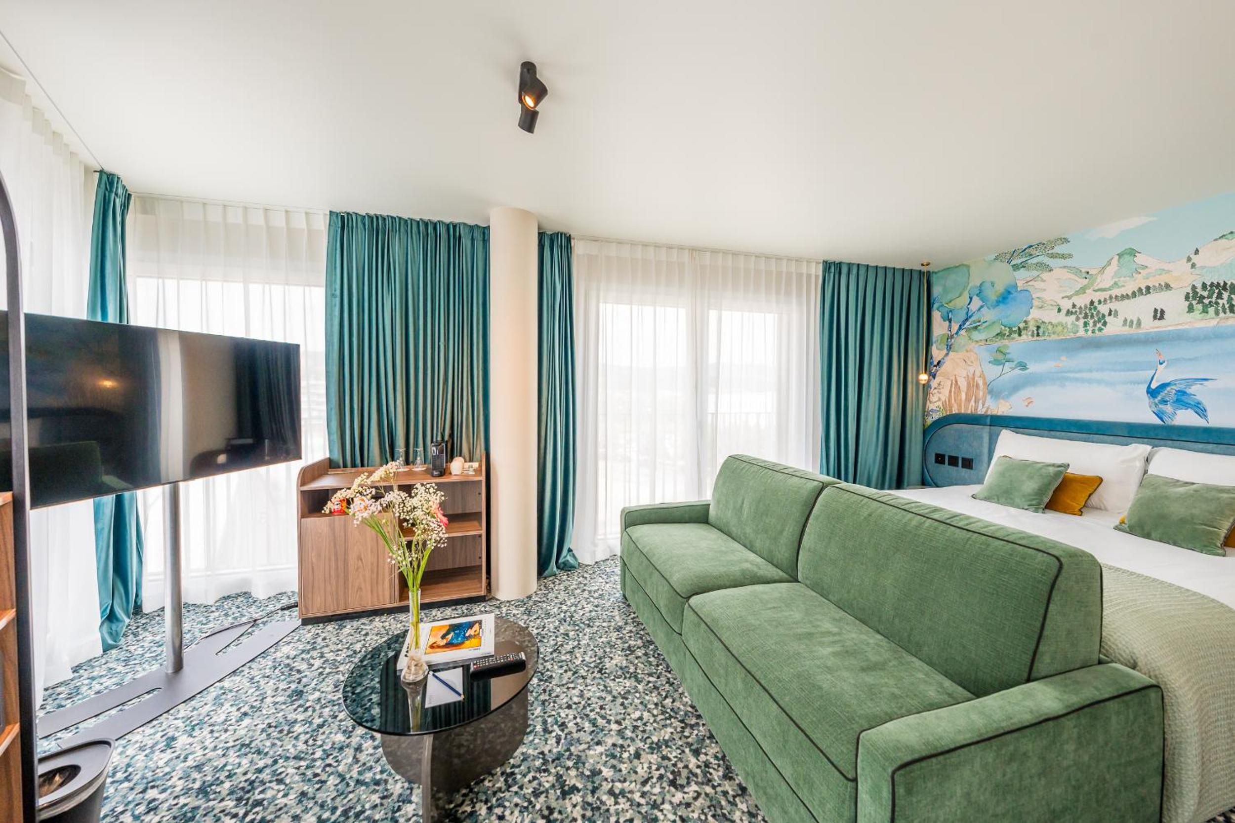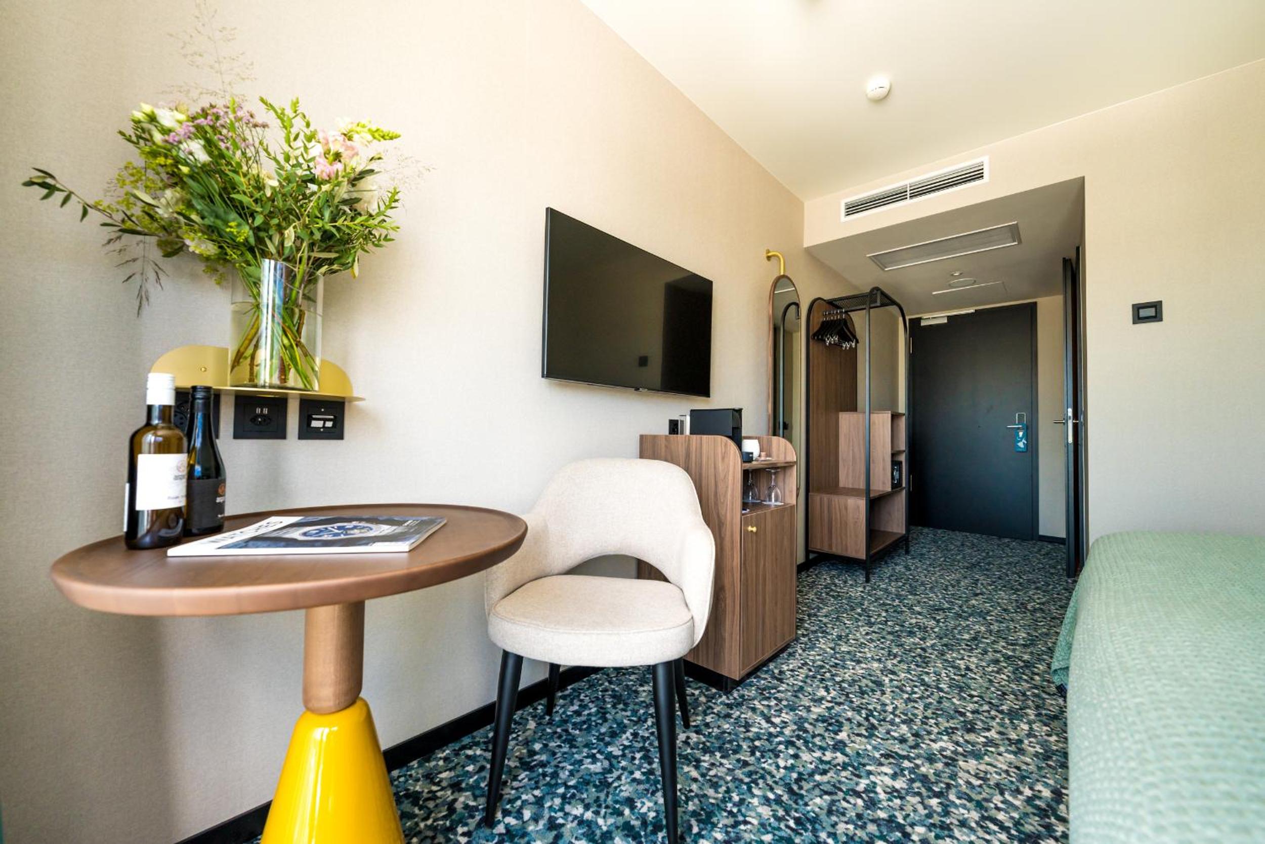 Hotel D Bulle - La Gruyère offers air-conditioned rooms with modern amenities like a coffee machine, minibar, and flat-screen TV, ensuring a comfortable stay for guests.