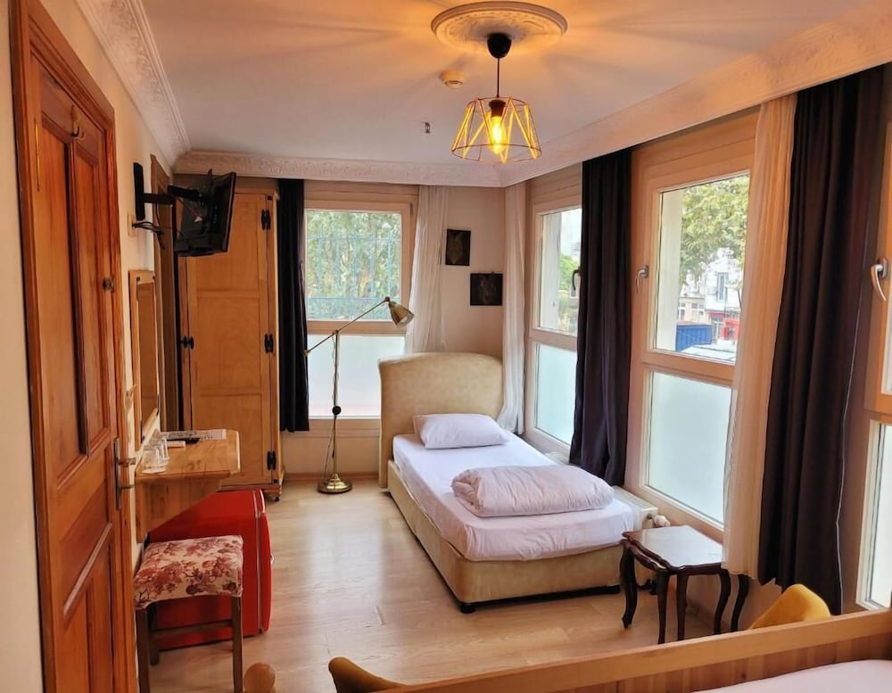Really a great hotel. Kitchen, no tourist, near proper supermarket, local bakery, kind staffs and roof top sitting area at sister’s hotel nearby (free tea and coffee all day) Hotel is like a home stay, so comfortable, very bright, good space. Front desk person works in the morning for check in, after that go to the sister’s hotel 3 minutes walk to, if u have a luggage it could b inconvenient. A sign at the door with phone number to contact them. If u don’t have data and phone, that could be a problem. The hotel is next to the tram line. Yes noise but not overwhelming. I wear ear plugs to sleep. Stay area near a tram stop if u don’t want to walk uphill to the main town. I would stay here again. Don’t go to SULTAN SULEYMAN HAMAM , dirty and bad service. It is near the hotel.