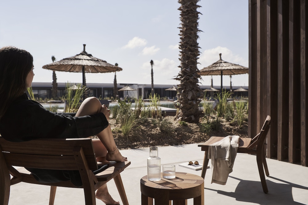 I was an El Alamain for the Egypt Airshow and chose this hotel for its proximity to the airport compared with the other hotel options that were recommended for the event. The location is fantastic. My room was clean and the amenities provided were superb. The hotel itself is located in the Hacienda neighborhood - and for those who are coming by taxi (or Uber, which I recommend) , you will need to instruct the driver to enter the Hacienda area through gate number two. Rooms are cabana style with a private patio facing a nice man made lagoon. Mine was a scant 150 m from some of the cleanest clearest ocean I have ever experienced. The hotel has dining options. The food I ate was perfectly good. There is a bar and a Cantina located on the beach as well as in the main area of the horseshoe of the hotel. Overall - a fantastic stay if a little inconvenient to get to because the hotel is at the back of the Hacienda neighborhood. I nevertheless would strongly recommend this as a couples hotel or even for a business stay. Great staff.