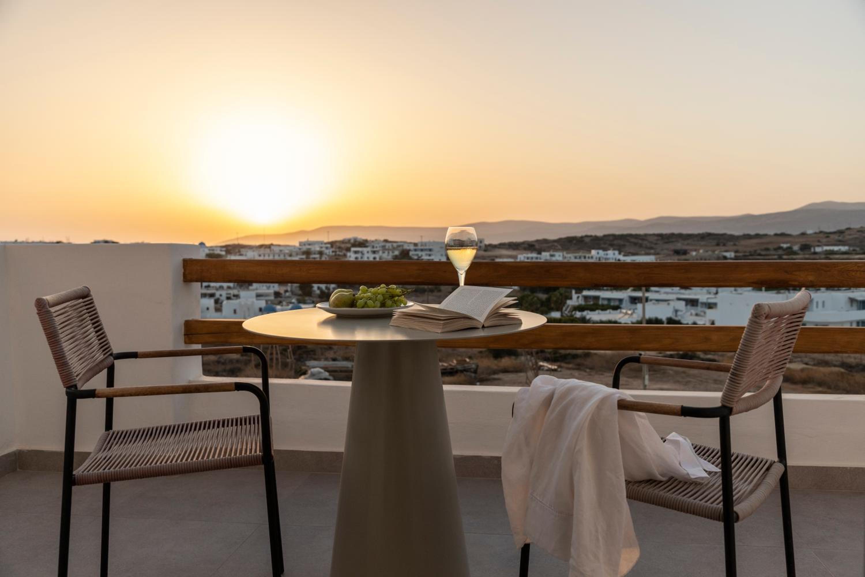 Everything was perfect. Beautiful setting with views over Koufonisi. Lovely gardens and pool area with bar serving reasonably priced drinks. We had a lovely bottle of rose for only €12!