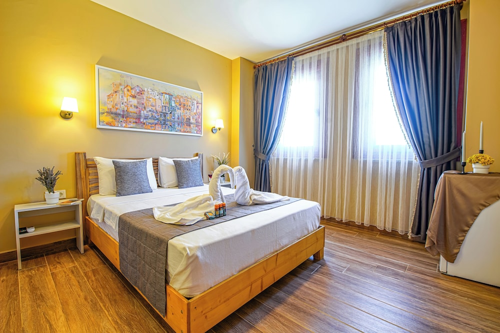Otel konumu itibariyle merkeze çok yakın koylarada uzak sayılmaz.Kahvaltısı ve yem yeşil güzel bahçesiyle, geniş bir otoparkı oluşuyla gayet memnun kaldığımız bir konaklama oldu.