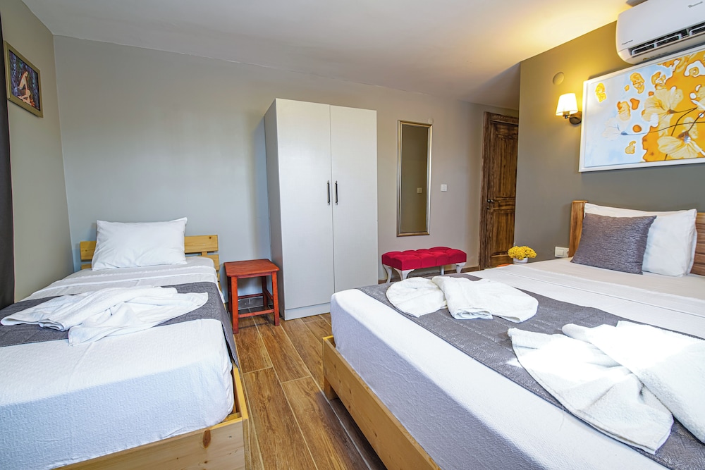 Otele ilk girişte bahçede karşılandık ama bu karşılama sadece girişte vardı onun sonrasında herhangi bir memnuniyet durumu sorulmadı. Odayı ayırtırken, ekonomi odası olduğu belirtilmişti ancak zemin katta olduğuna dair bir bilgi verilmemişti. Giriş yaparken bu durumu yetkililere ilettiğimizde, işletmecinin kızı fark ödeyerek odayı değiştirebileceğimizi söyledi. Ancak, bu bilginin satın alma sırasında açıkça belirtilmesi gerektiğini kendilerine ilettik. Oda zemin katta olmasına rağmen temizlik açısından sadece orta düzeydeydi, fakat otelin yeni olduğu belli oluyordu. Yatak başında telefonumuzu şarj ederken koyabileceğimiz bir sehpa bile yoktu. Küçük bir sehpa eklemek bu kadar zor olmamalıydı.