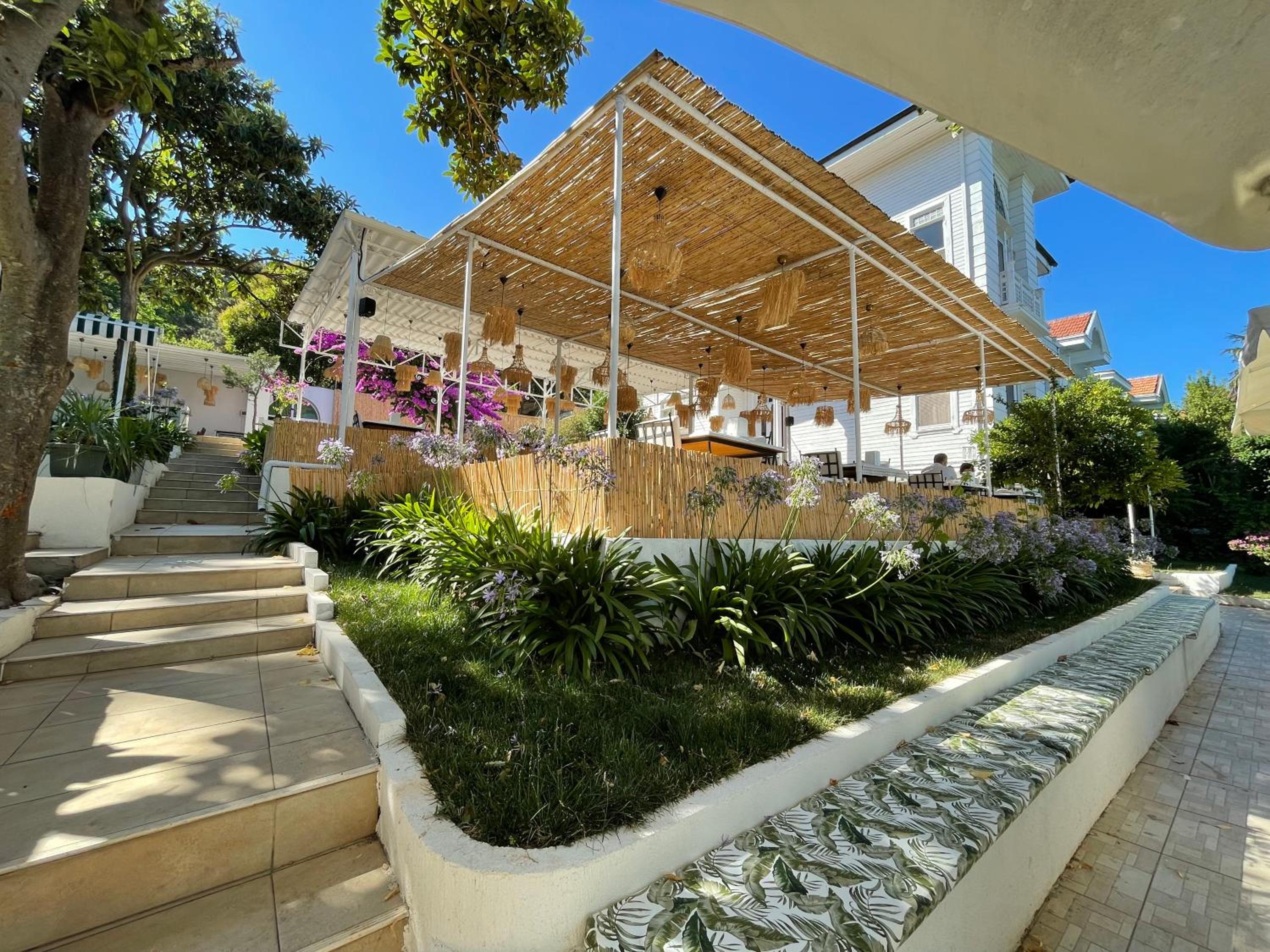Enjoy the serene garden and city views from Ikigai Hotel Villa Rıfat. Relax in the outdoor fireplace or explore nearby beaches just minutes away.
