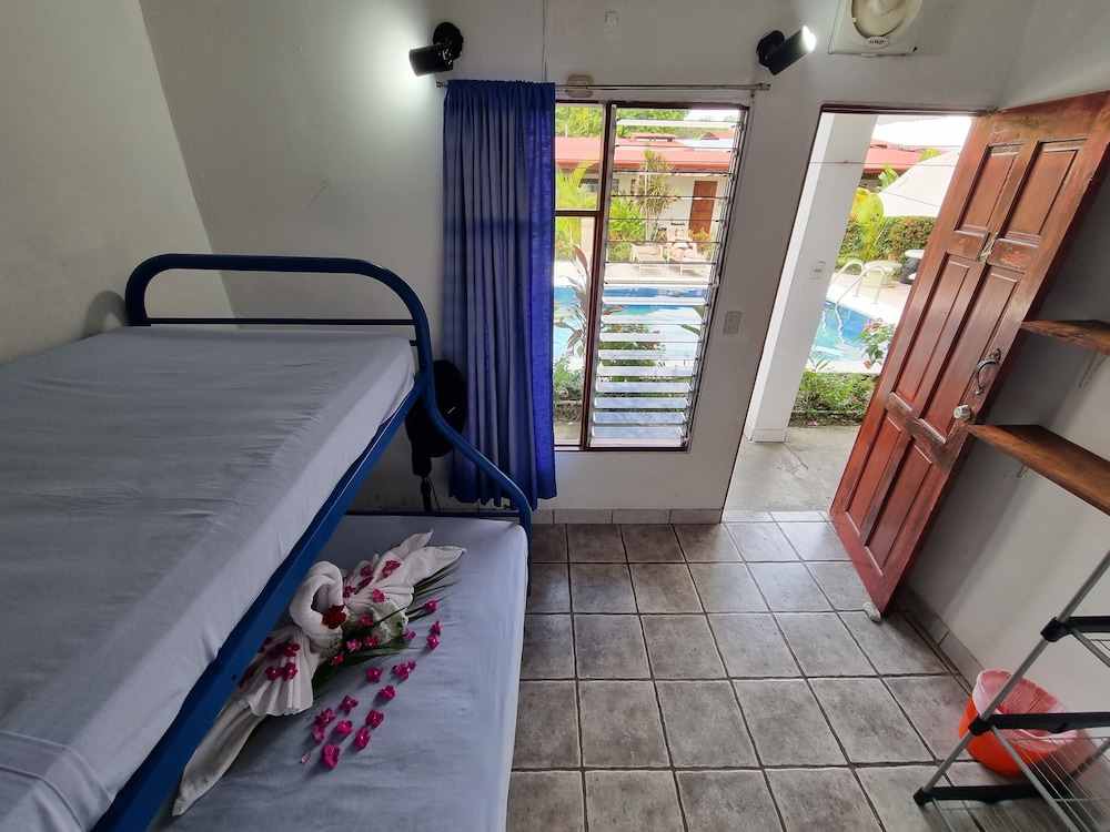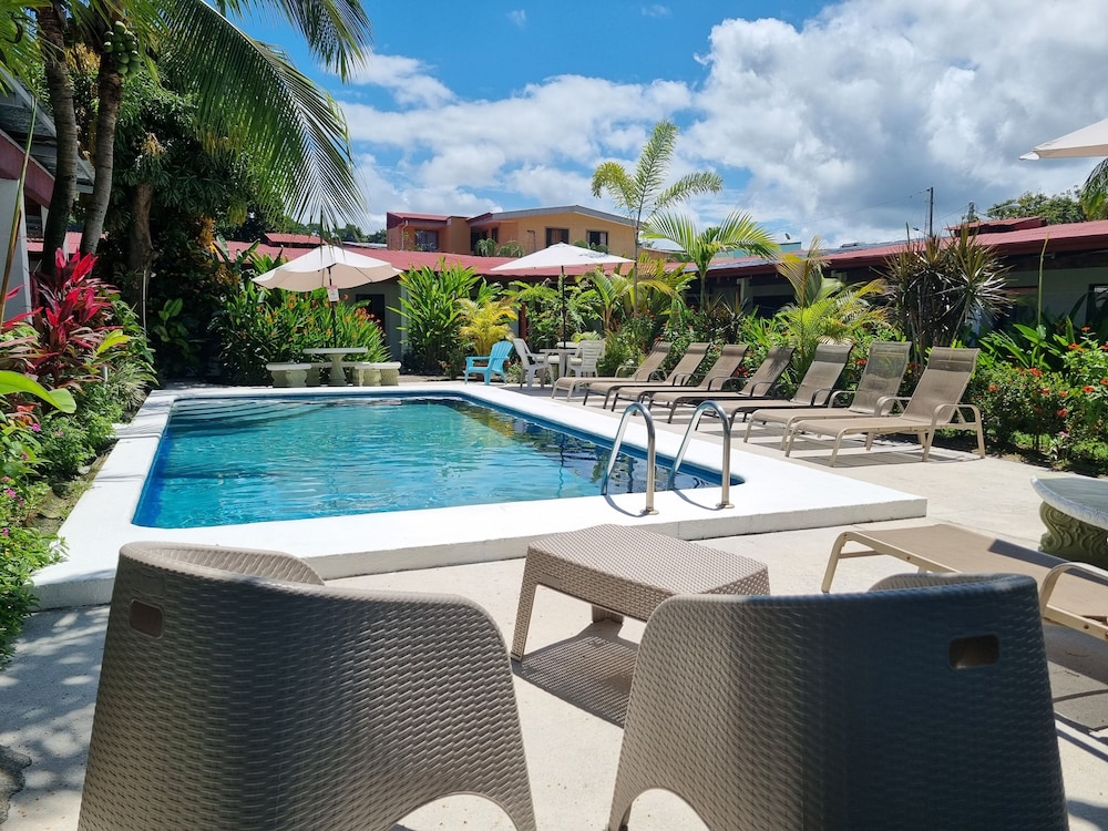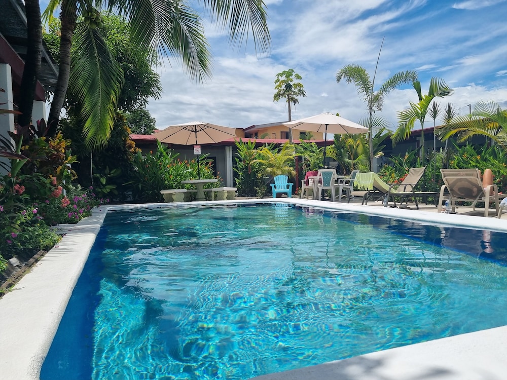 Really nice hotel. Clean rooms, swimming pool. Recomend getting room with AC as it gets hot in Quepos. Friendly staff. Coffee and tea available 24x7. There is a kitchen with utensils if you want to cook. Good location.