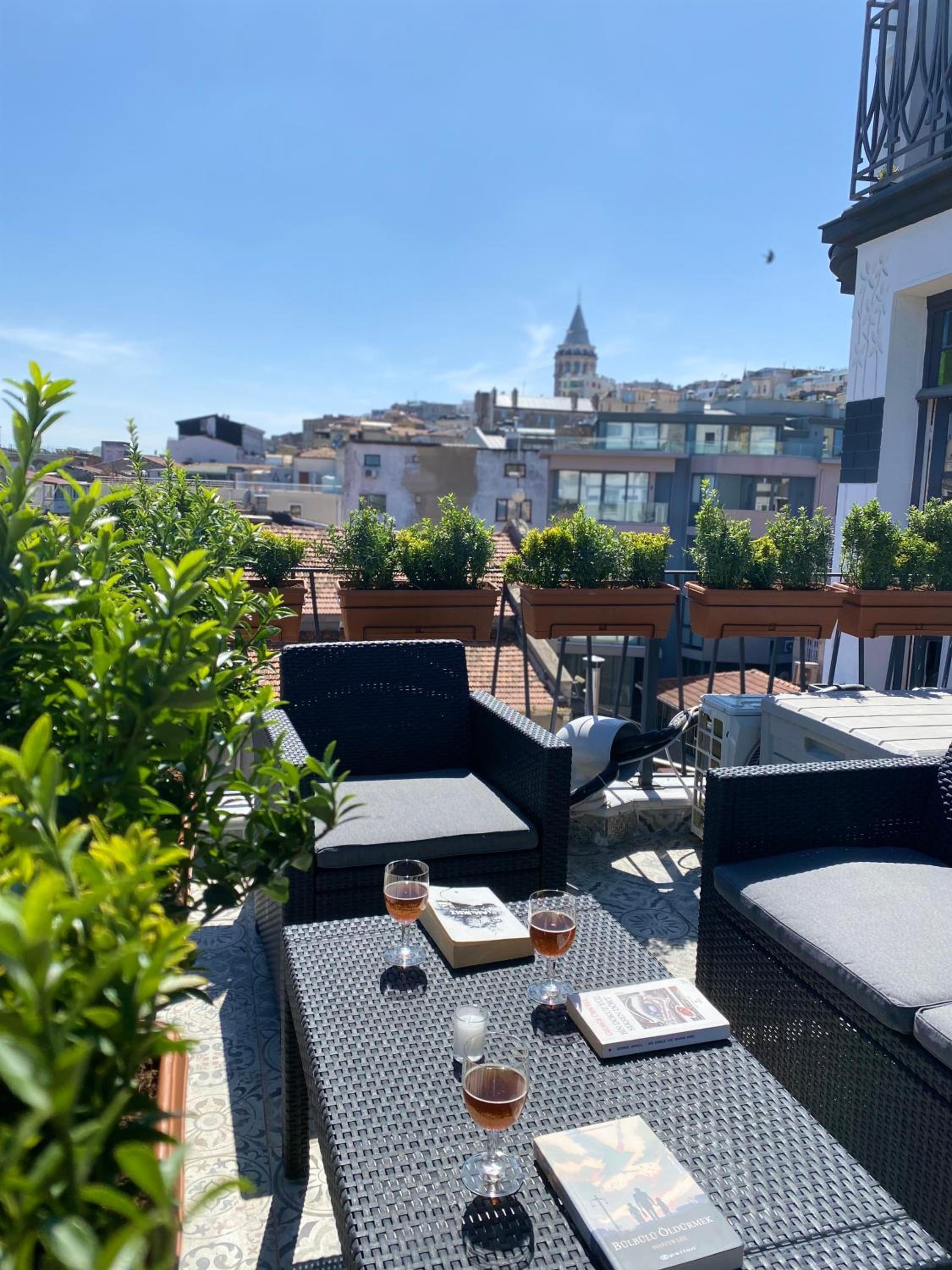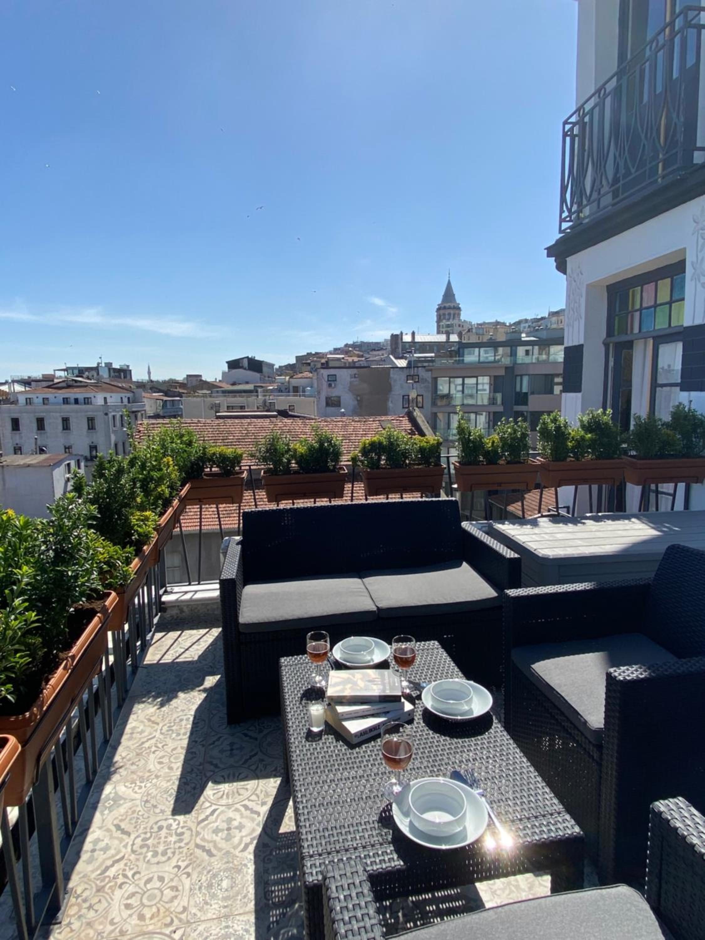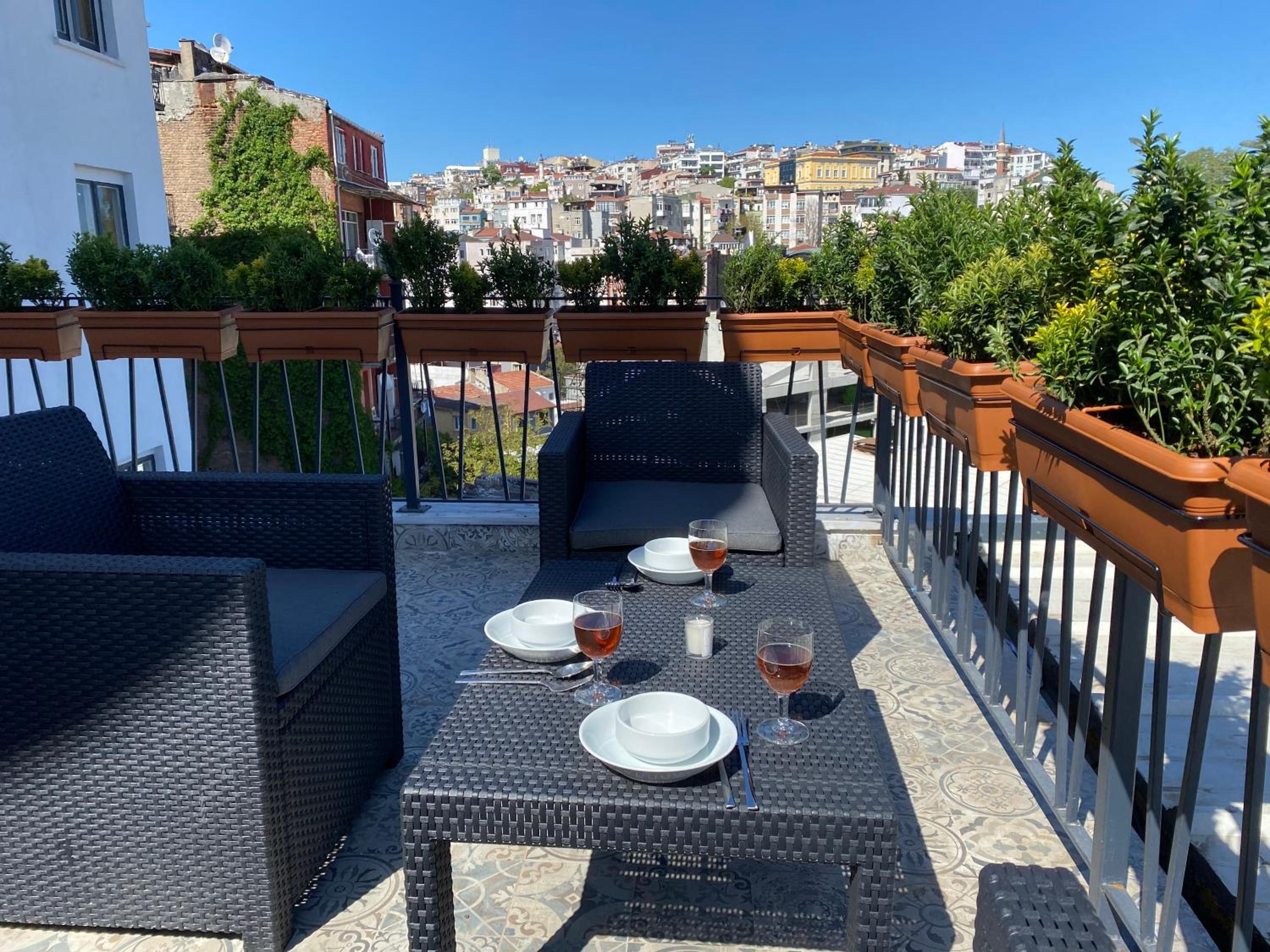 The location is perfect, a 10 min walk from Taksim square and 3 tram stops from the Blue Mosque and Aya Sofiya. The rooftop terrace literally makes this place worth everything, nothing like drinking coffee and watching the Bosphorus/Golden Horn. Theres plenty of restaurants around, and a bakery in the building. The apartments have everything you could need for a longer stay, we felt quite at home.
