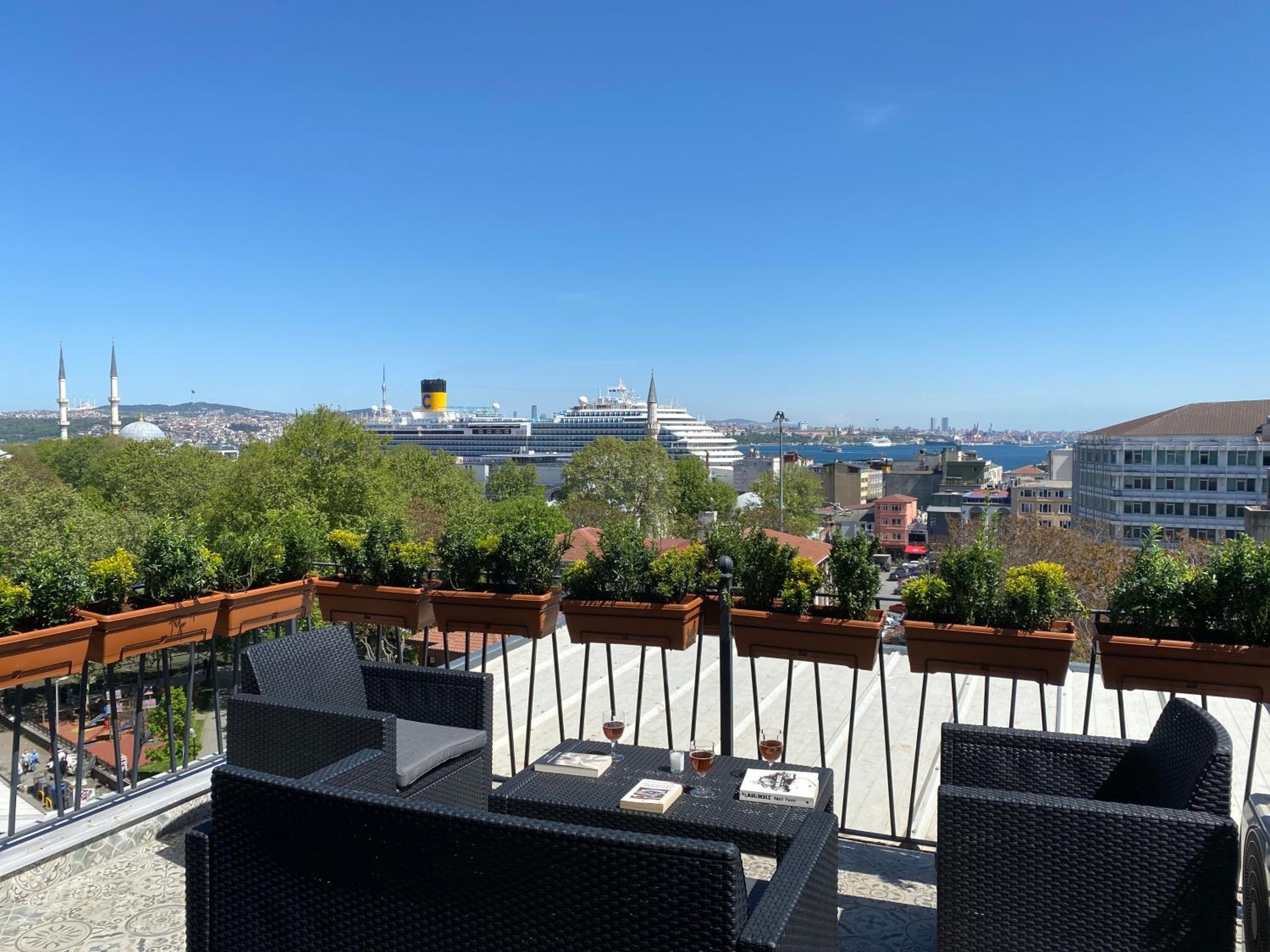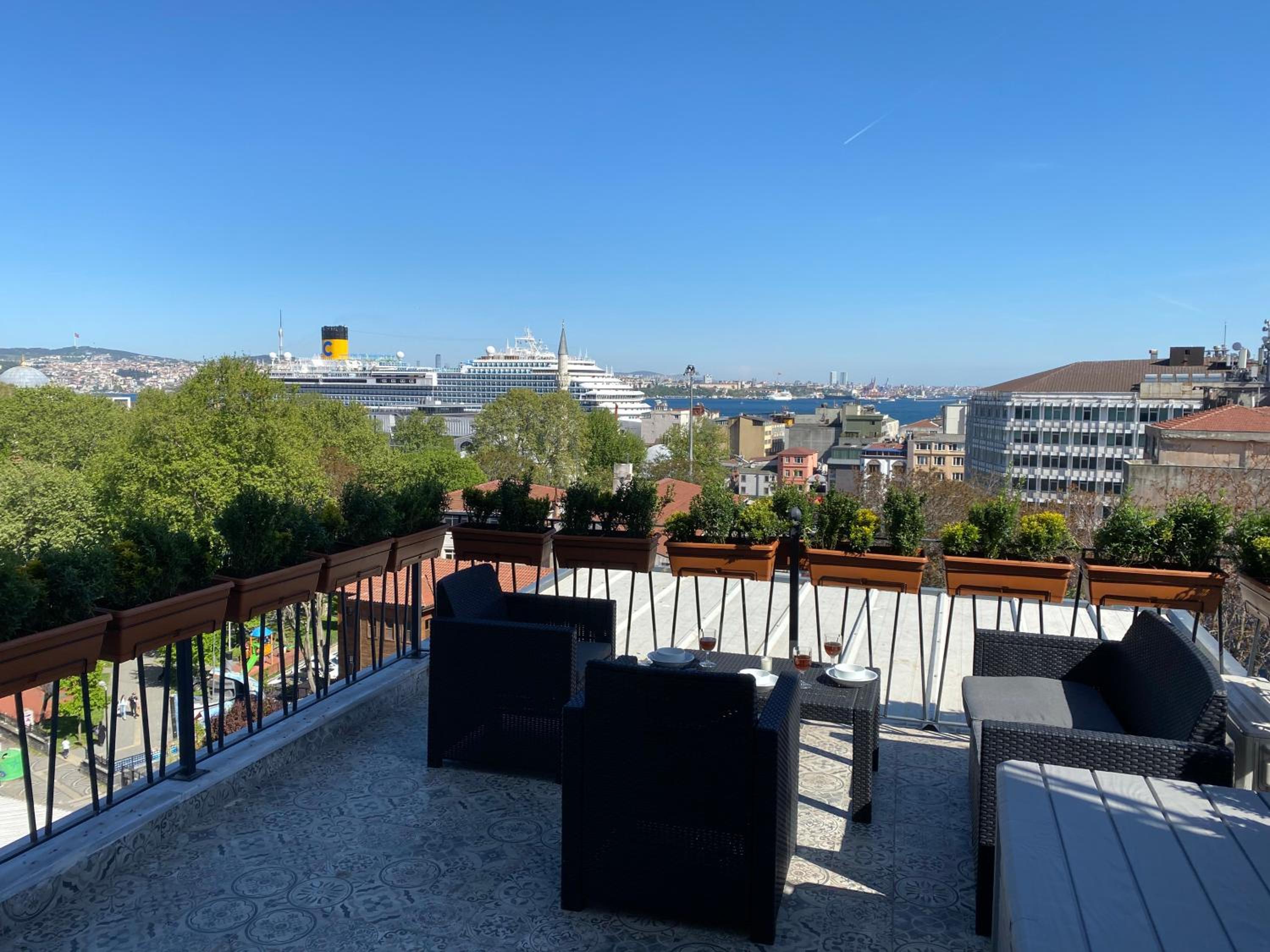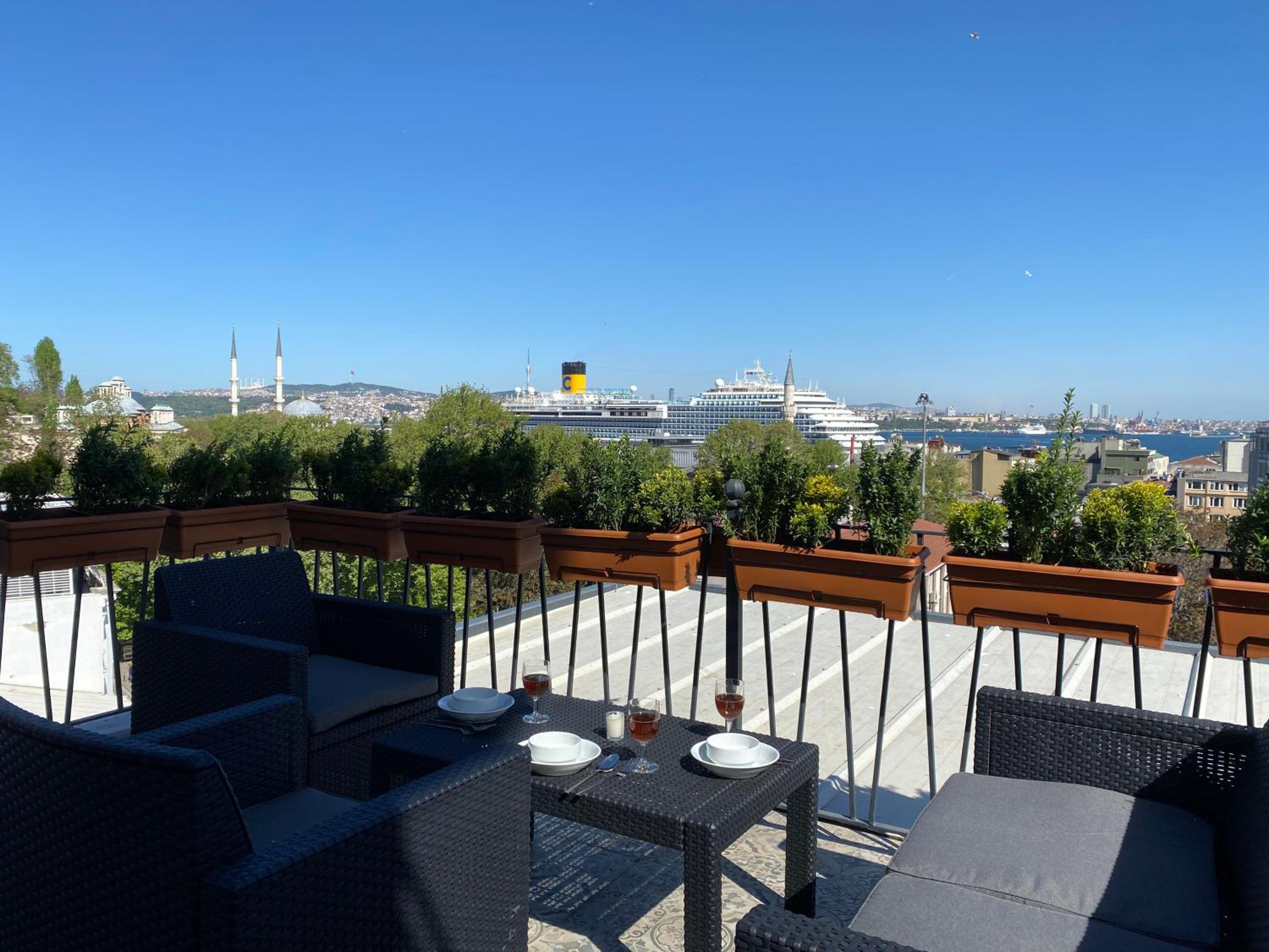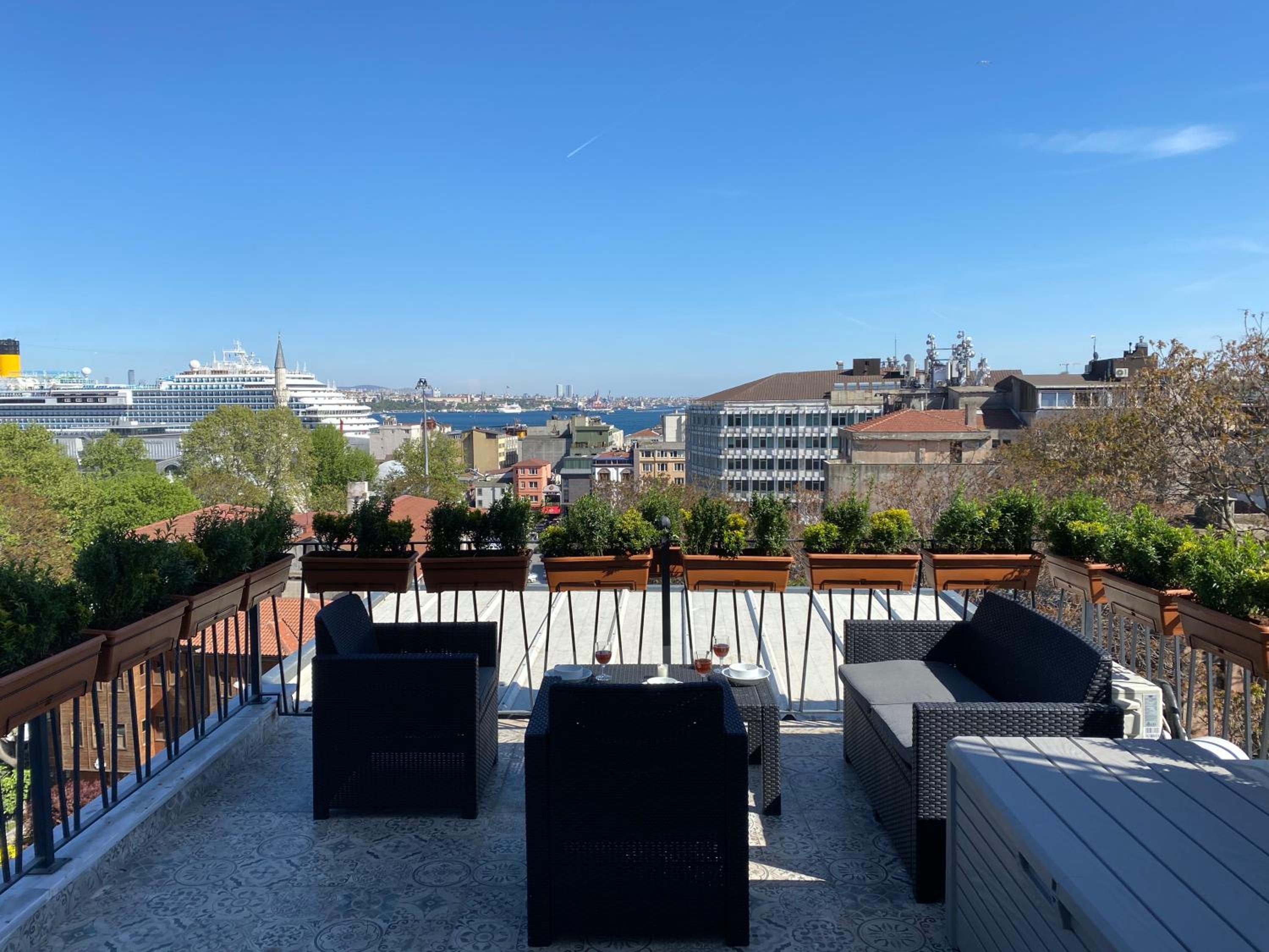 The location is perfect, a 10 min walk from Taksim square and 3 tram stops from the Blue Mosque and Aya Sofiya. The rooftop terrace literally makes this place worth everything, nothing like drinking coffee and watching the Bosphorus/Golden Horn. Theres plenty of restaurants around, and a bakery in the building. The apartments have everything you could need for a longer stay, we felt quite at home.
