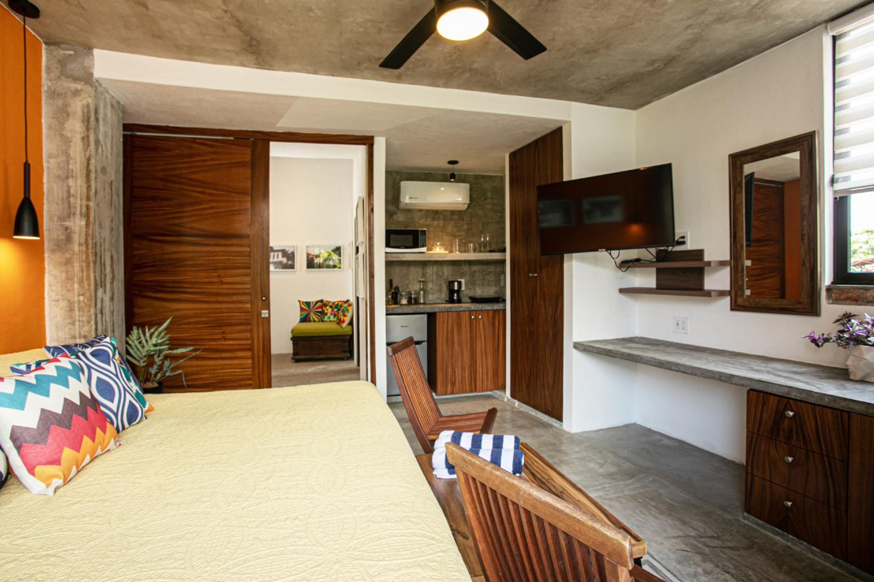 Indulge in air-conditioned rooms furnished with modern conveniences including a coffee machine, microwave, and flat-screen TV.