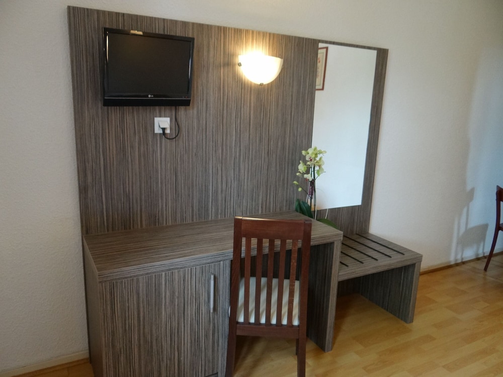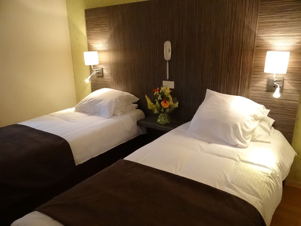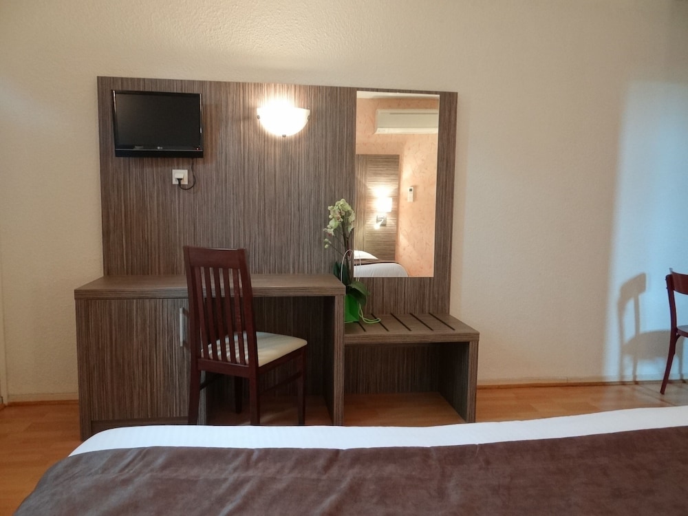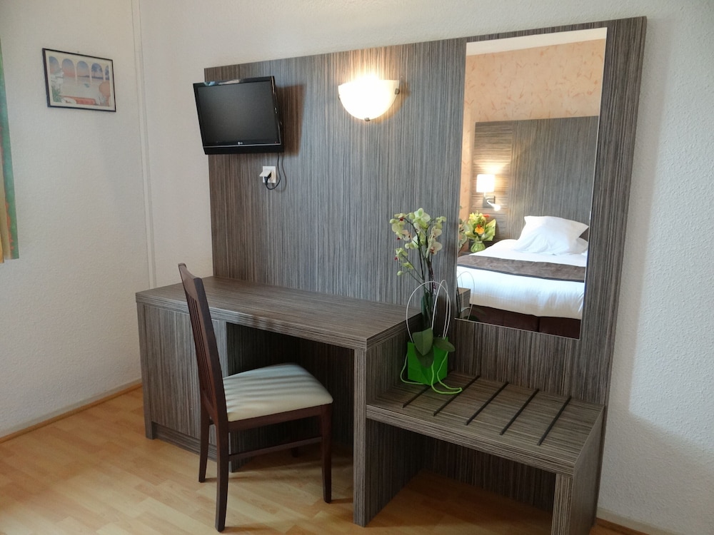Hôtel très en deçà des standards. Une totale rénovation s’impose. Tous les sanitaires de la ch sont entartrés, moisissures bac à douche et rideaux de douche.Parquet, faïence, peinture..tout est du bricolage et plus est qui date. Également mauvaise literie. Poussière de plusieurs mois sur toutes les bordures de fenêtres intérieures et tous les angles en général.idem dans la salle de restauration .Pas de climatisation. Ici faire la ch consiste juste à changer les draps et serviettes. 80 € la nuit avec p’tit déjeuner, hors de prix . Je fais + de 100 nuitées d’hôtel par an pour le travail, donc je sais de quoi je parle .