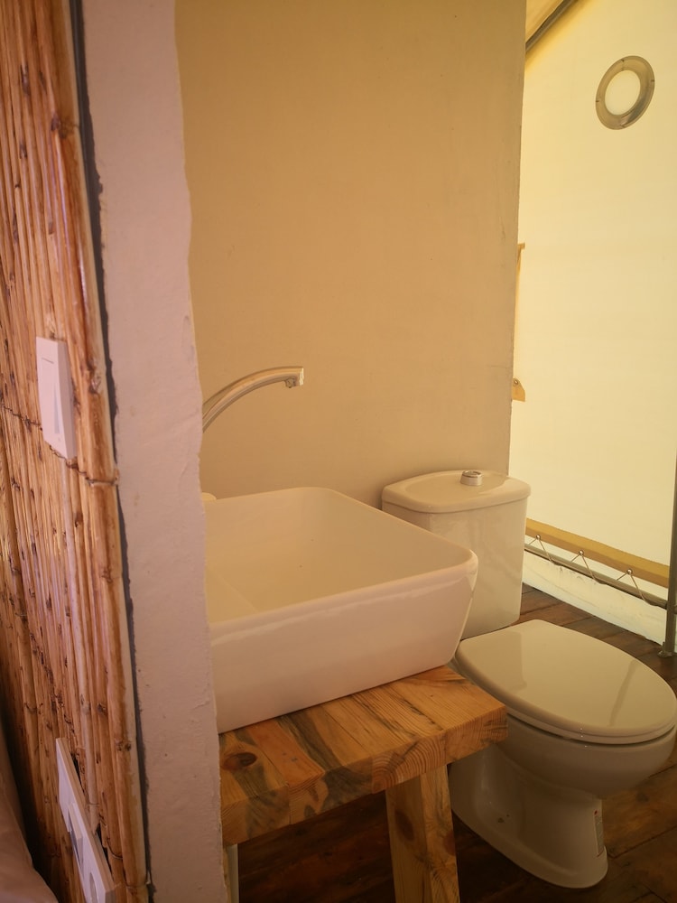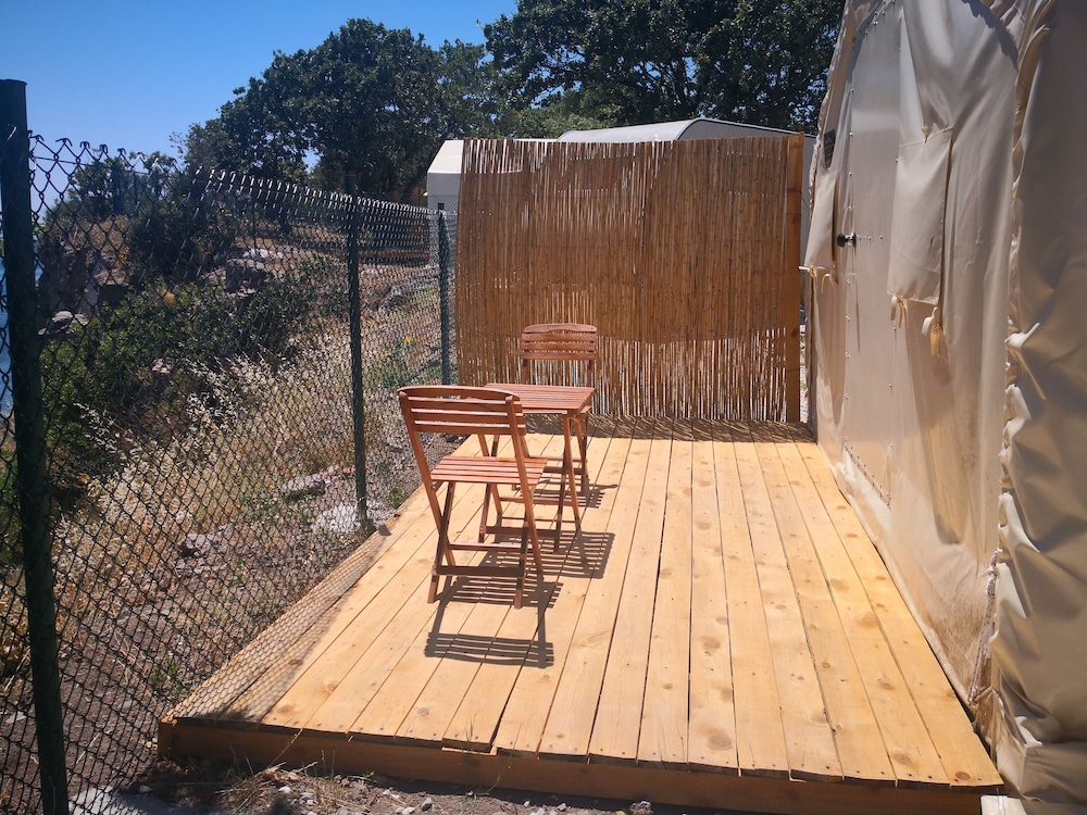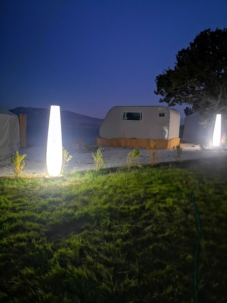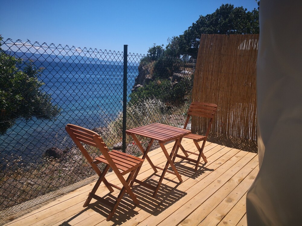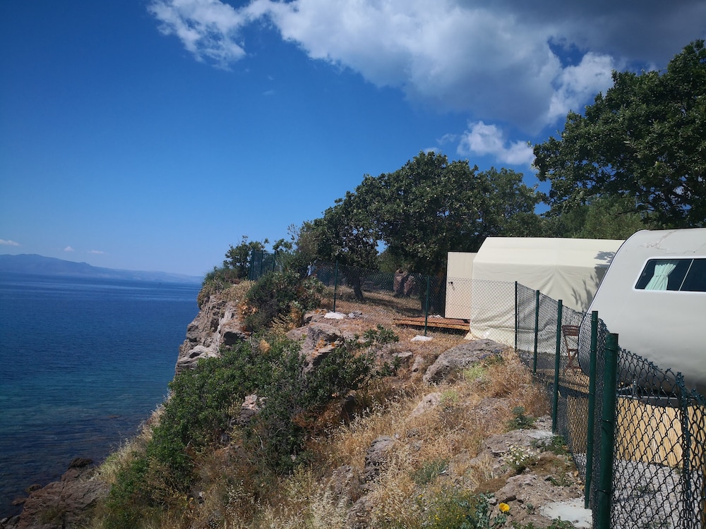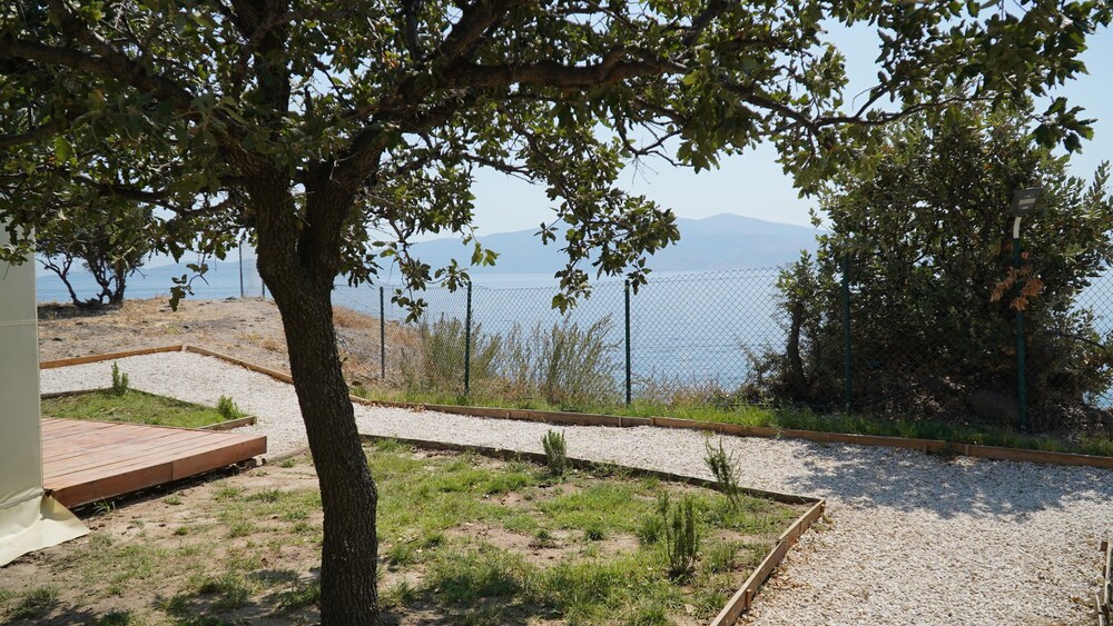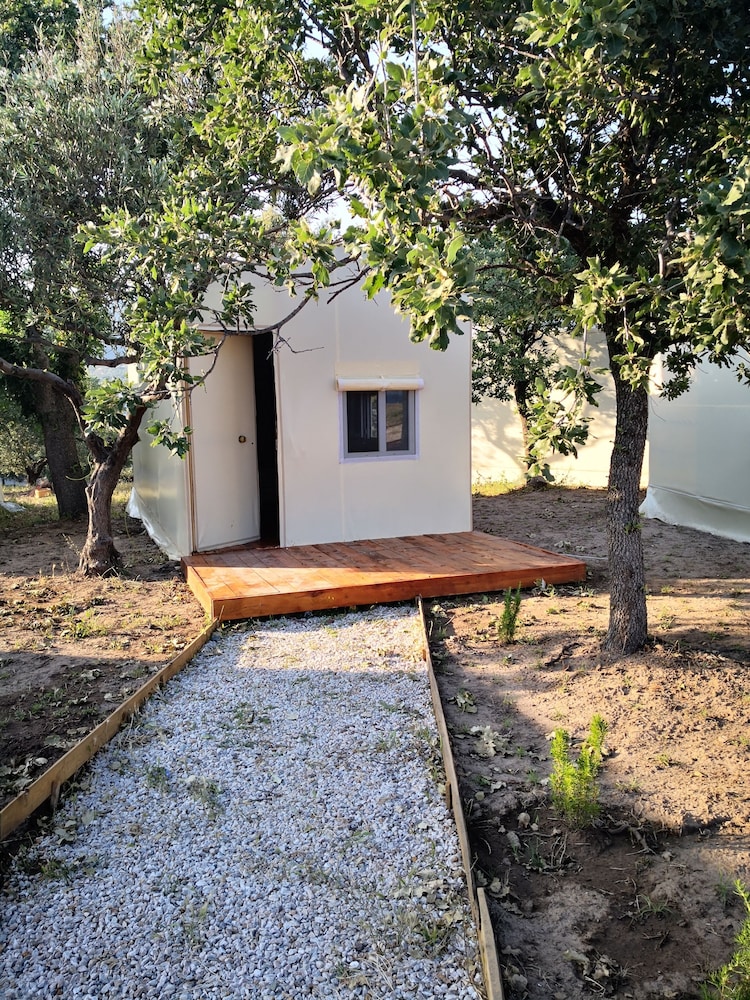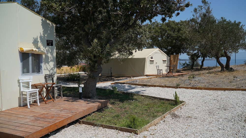 Glamping room’da 2 gece 3 kişi konakladık. Odanın içi gayet temizdi, sade ve hoş bir şekilde tasarlanmıştı. Tek olumsuz yanı odadaki tuvaletin kapısının olmaması :) Mekanın iskeleden denize girilen ayrı bir platformunun olması çok hoş, denizi gerçekten çok temiz ve berrak. Bir akşam kendi restoranlarında yemek yedik, mezelerden ve balıktan gayet memnun kaldık, fiyatları da makul bulduk. İşletmeci Adnan bey ve diğer çalışanlar gayet ilgiliydi. Fiyat performans dengesi de hesaba katılınca gerçekten keyifli bir konaklama deneyimi yaşadık. Teşekkür ederiz. :)
