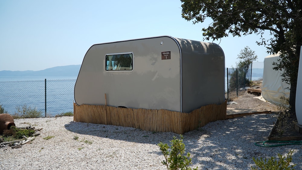 Veranda Glam Canping de beş gün çok güzel bir tatil yaşadık, özellikle konumu, manzarası, yemeklerinin nefaseti ve odalarının dizaynı ve temizliği çok özenilerek hazırlanmış ve biz misafirlere güzel bir konfor alanı sunuyordu, İşletmecisi Muzaffer Bey başta olmak üzere tüm çalışanları çok güler yüzlü ve her türlü ihtiyacımızı karışlamak için ellerinden gelen herşeyi bizi kırmadan yerine getirdiler. Son olarak ta denizinin mükemmel olduğunu belirtmek istiyorum ve gitmeyi düşünen herkesin yanına muhakkak maske ve şnorker almasını tavsiye ederim çünkü suyun içi tam bir akvaryum.