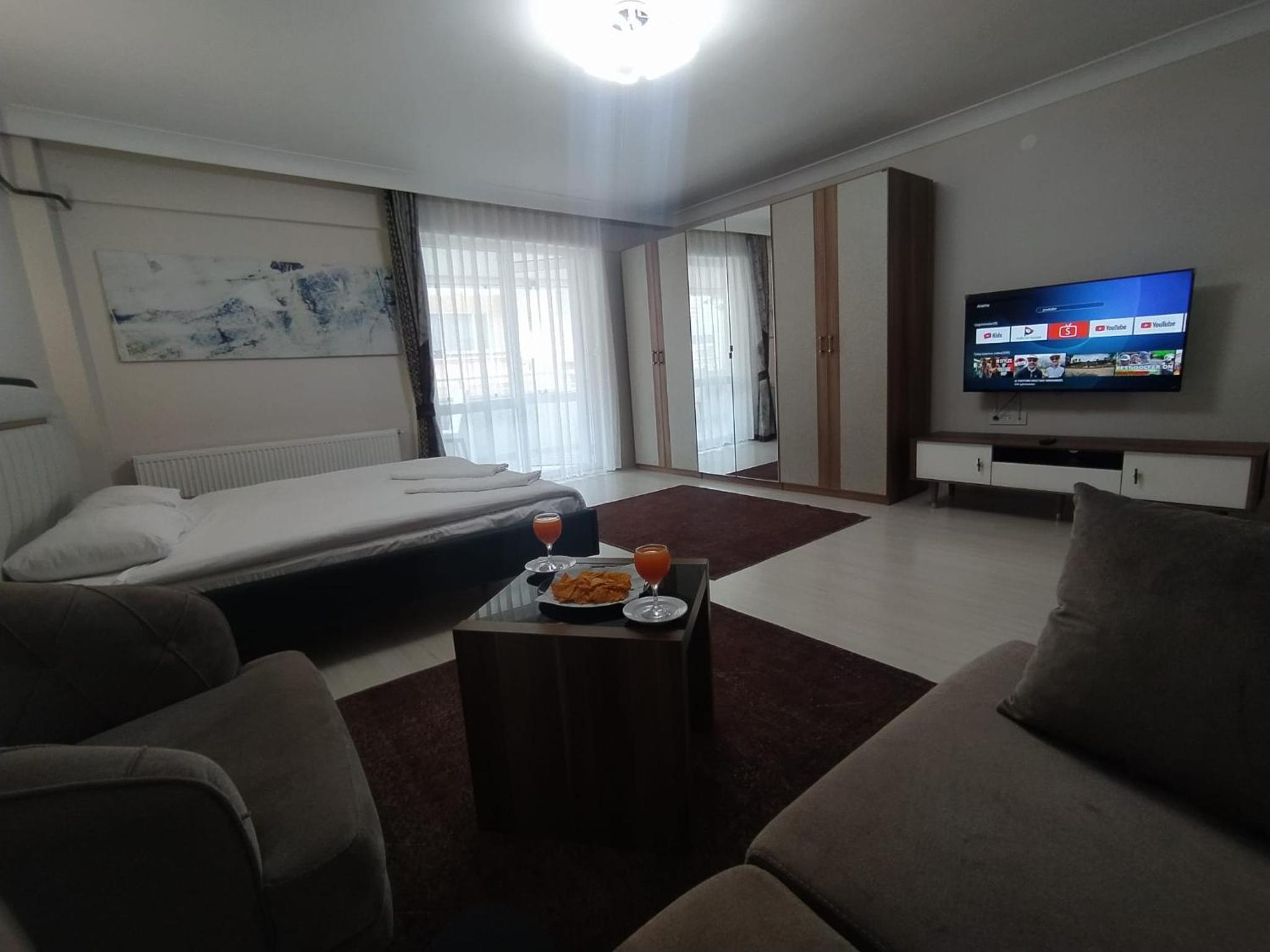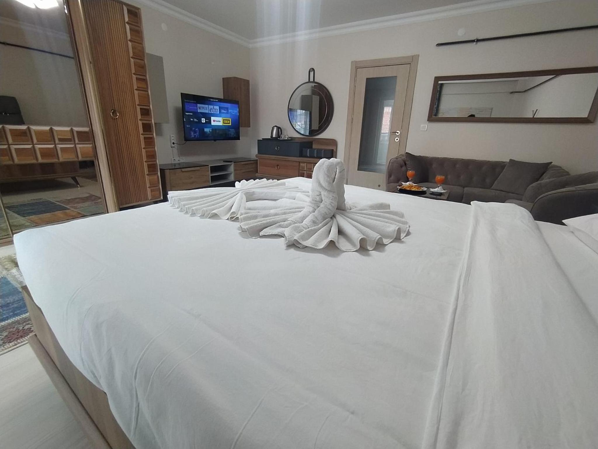 Located in Bolu, just a short distance from Seven Lakes National Park, Bolu Deluxe Otel offers a luxurious stay with free WiFi and parking. Each room boasts a balcony overlooking the city, along with modern amenities such as a TV, fridge, and complimentary toiletries.