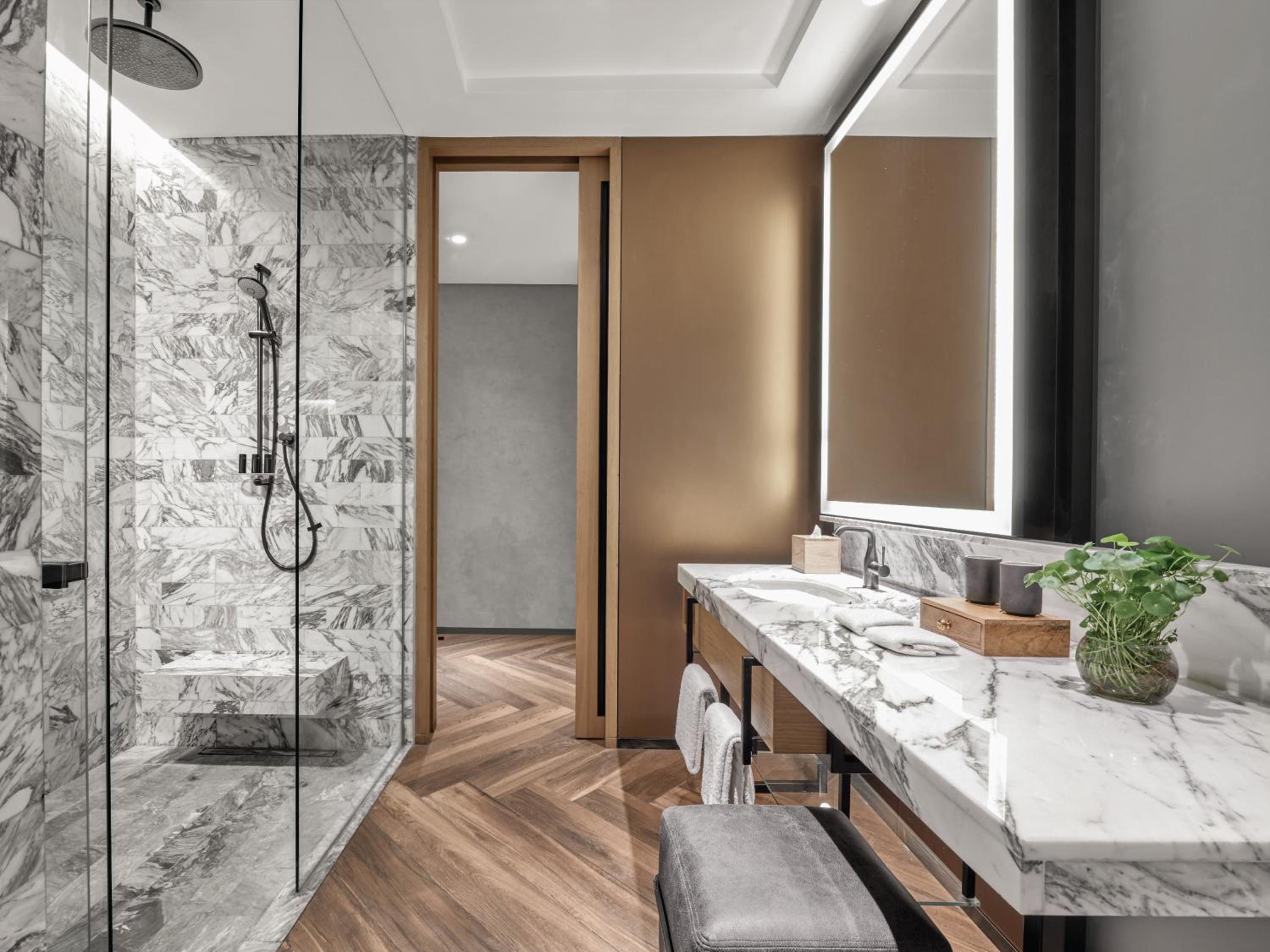 Shower door , didn’t open out and tap on the far side So had to go inside shower and close door to turn on and getting a cold blast before it warmed up. Brr