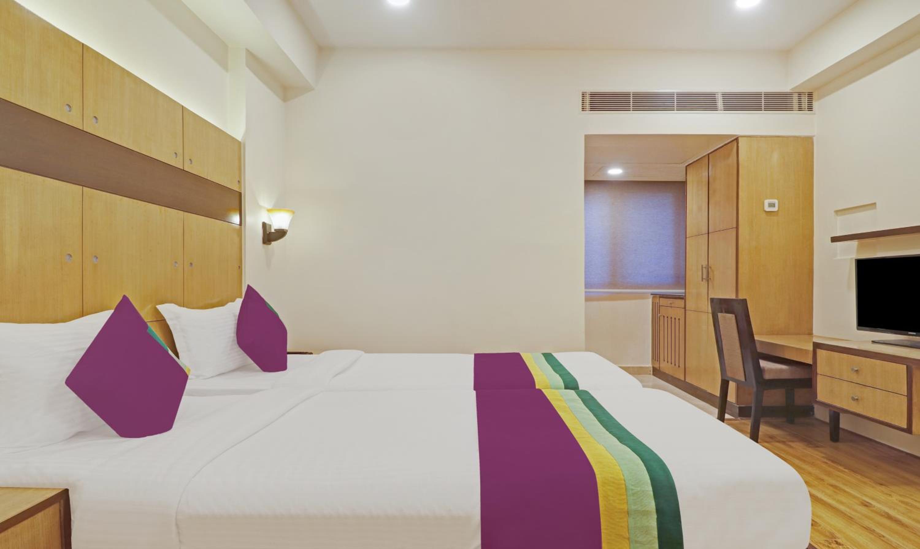 Treebo Tryst Seven Lake View, a 4-star hotel in Hyderabad, offers air-conditioned rooms with free WiFi and private bathrooms. Each room features a desk, flat-screen TV, and cozy beddings for a comfortable stay.