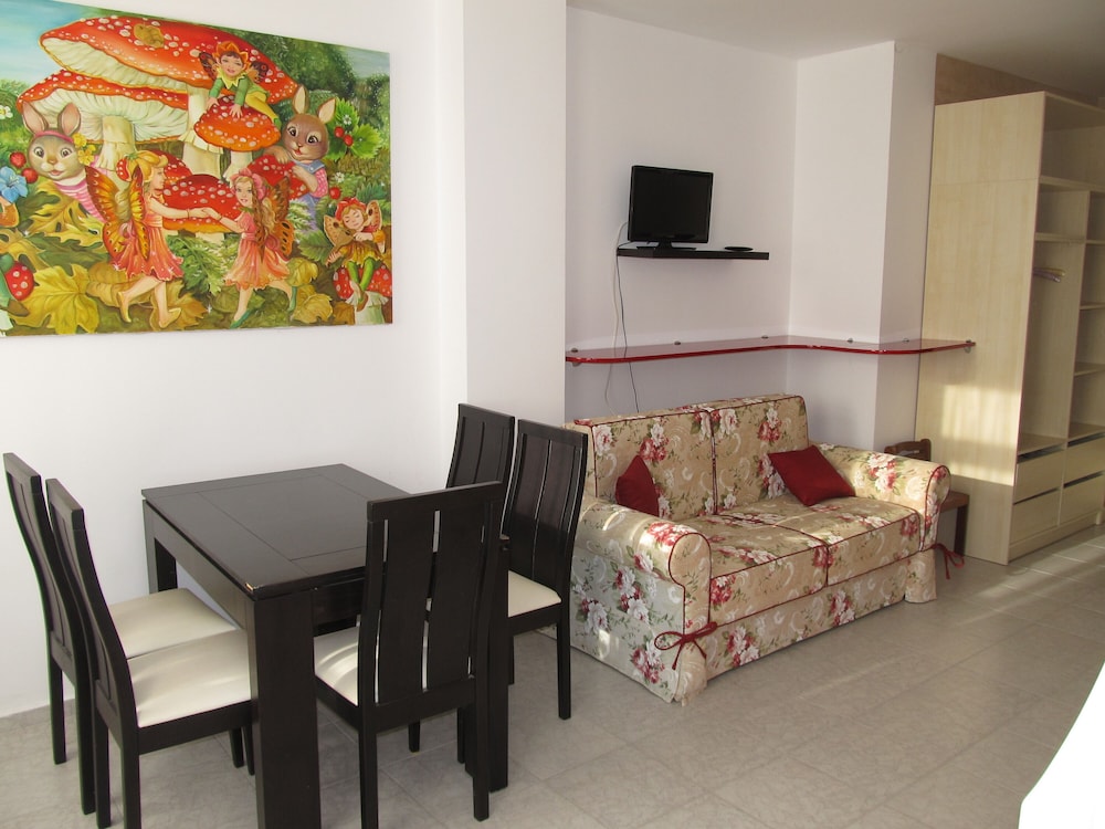 Flott hotel, med hyggelig personal. Godt renhold 5 dager i uken. Alt av nødvendig kjøkkenutstyr. Nyoppusset bad med stor varmtvannsbereder. 15 min spasertur til strand og litt lengre til sentrum. Transfer ordnes av hoteller. Hjørneleilighetene er størst a5 i 2 etg kan anbefales.