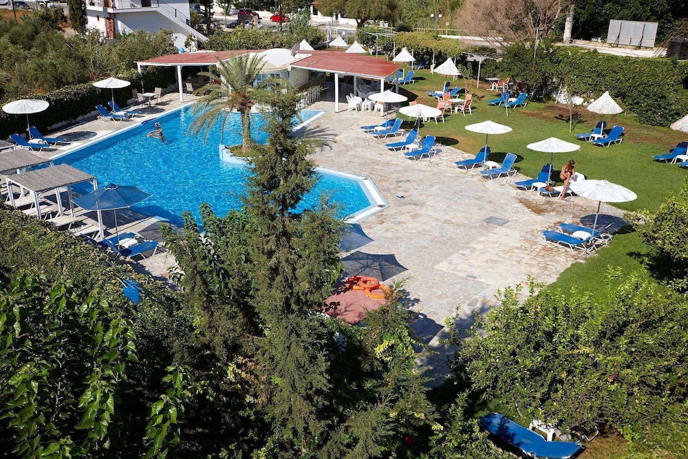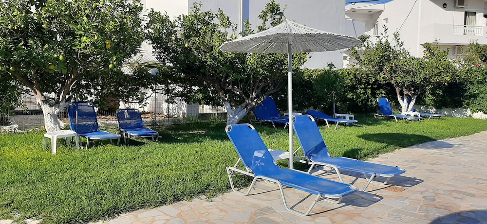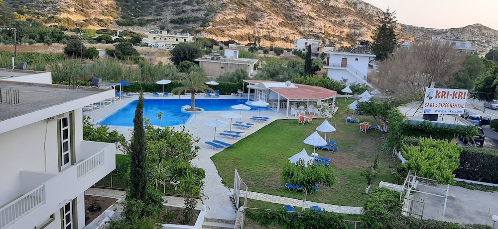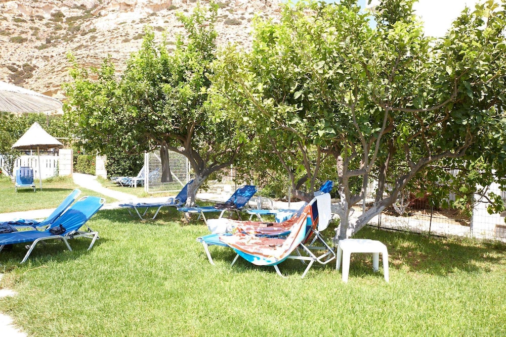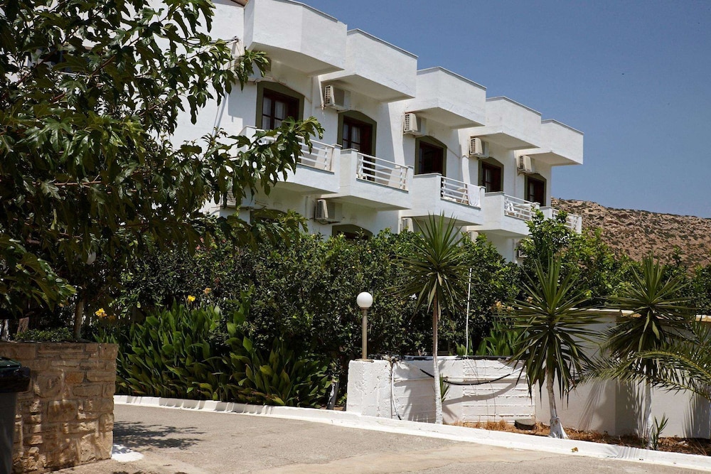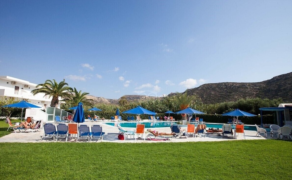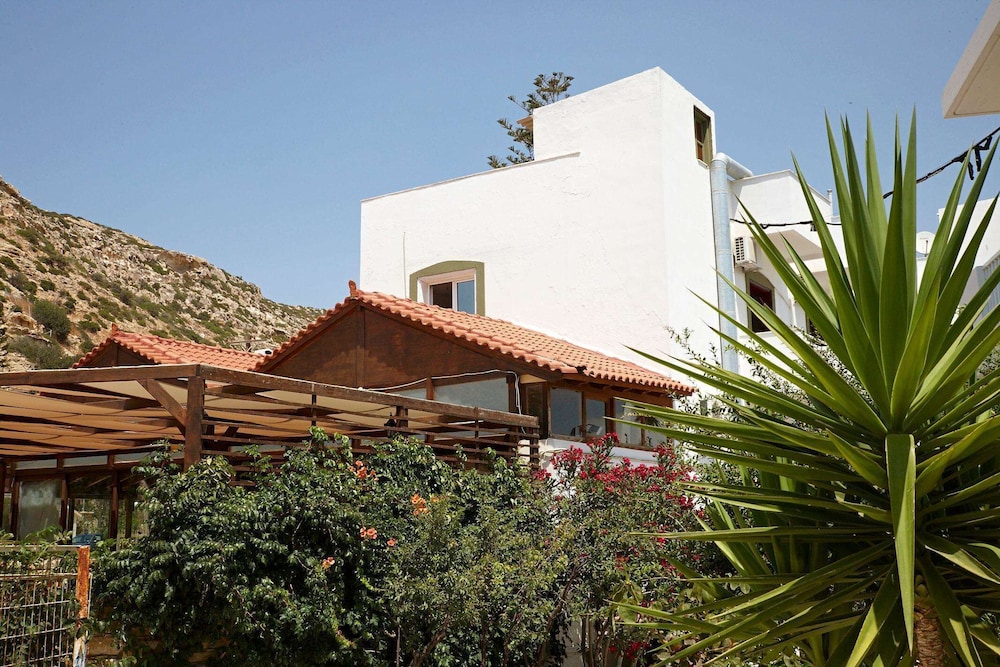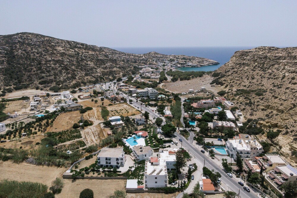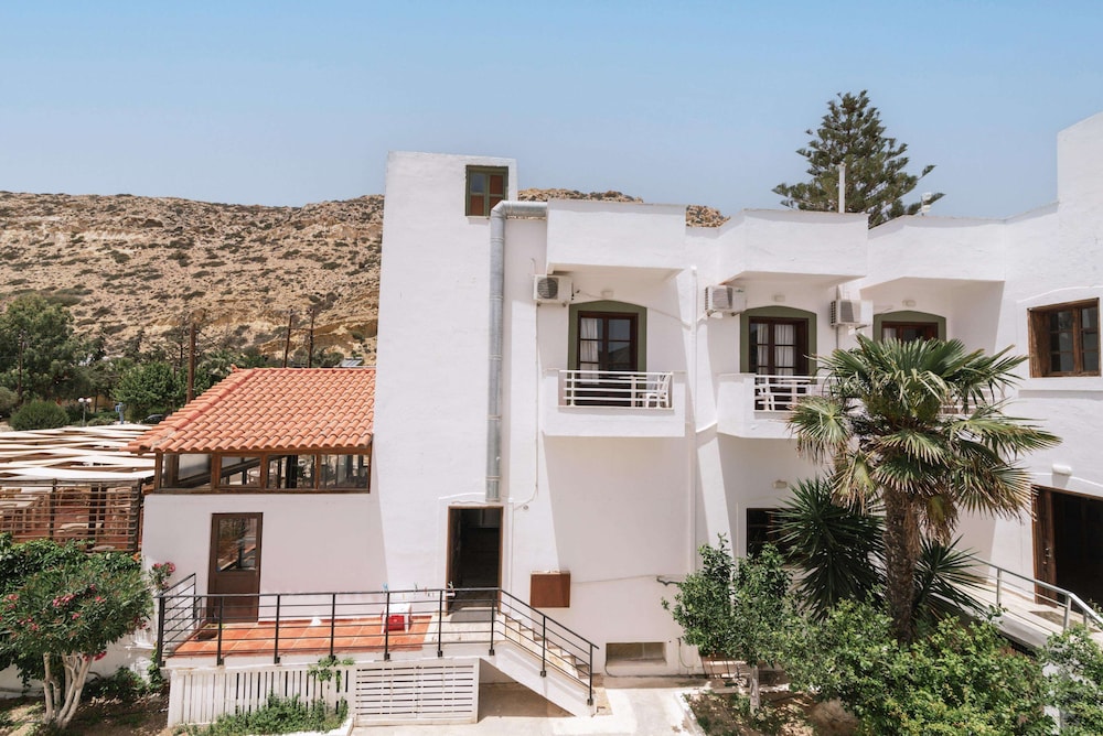 Accueil sympathique. Hôtel situé à 700 mètres du village et de la plage de Matala, disposant d'une jolie piscine. Le petit déjeuner (hormis les boissons chaudes et jus de fruits) est varié et de qualité. La chambre est d'un confort plutôt sommaire. (pas de table de chevet et de lampe de chevet), salle de bain de petite taille. Le rapport qualité prix demeure excellent