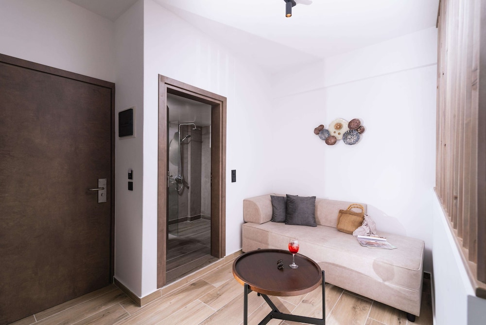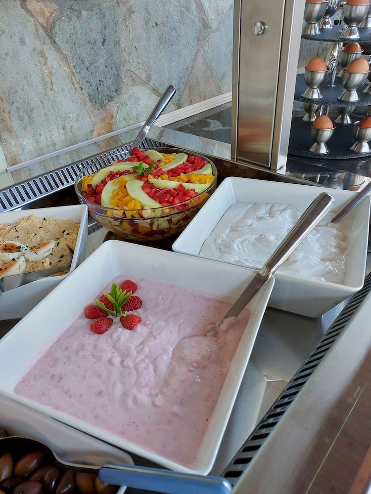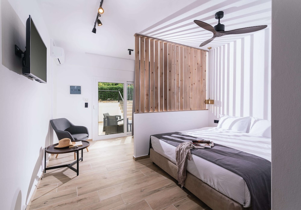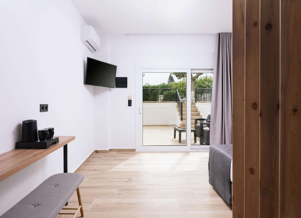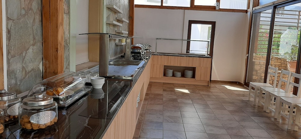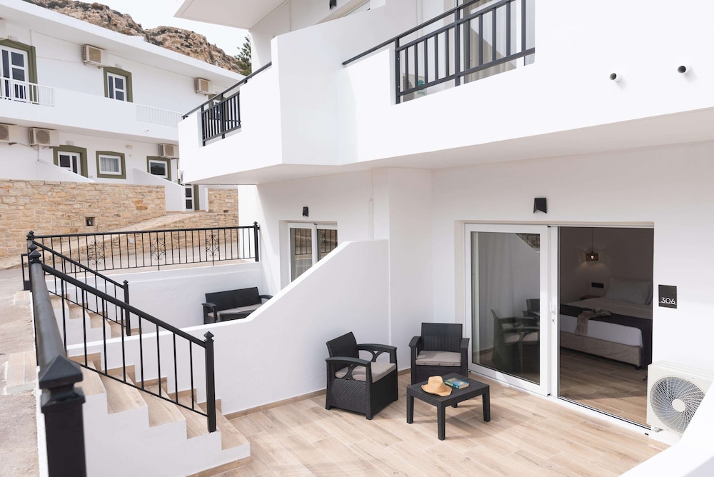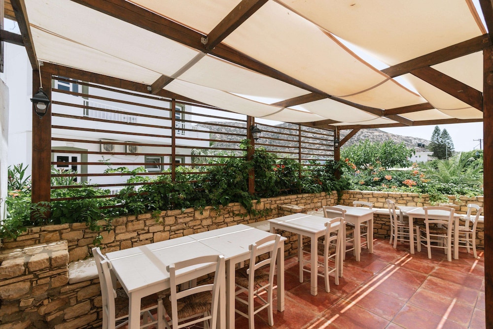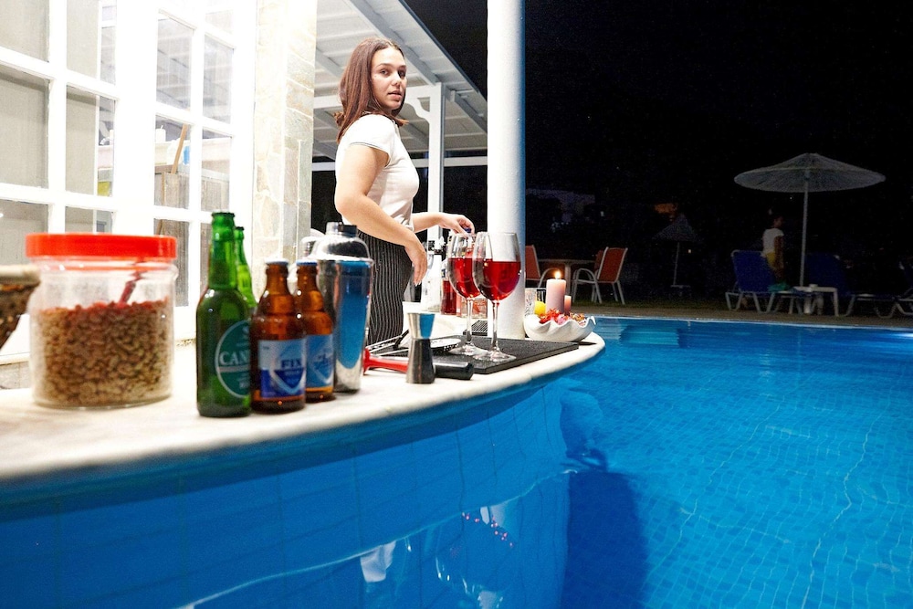 Accueil sympathique. Hôtel situé à 700 mètres du village et de la plage de Matala, disposant d'une jolie piscine. Le petit déjeuner (hormis les boissons chaudes et jus de fruits) est varié et de qualité. La chambre est d'un confort plutôt sommaire. (pas de table de chevet et de lampe de chevet), salle de bain de petite taille. Le rapport qualité prix demeure excellent