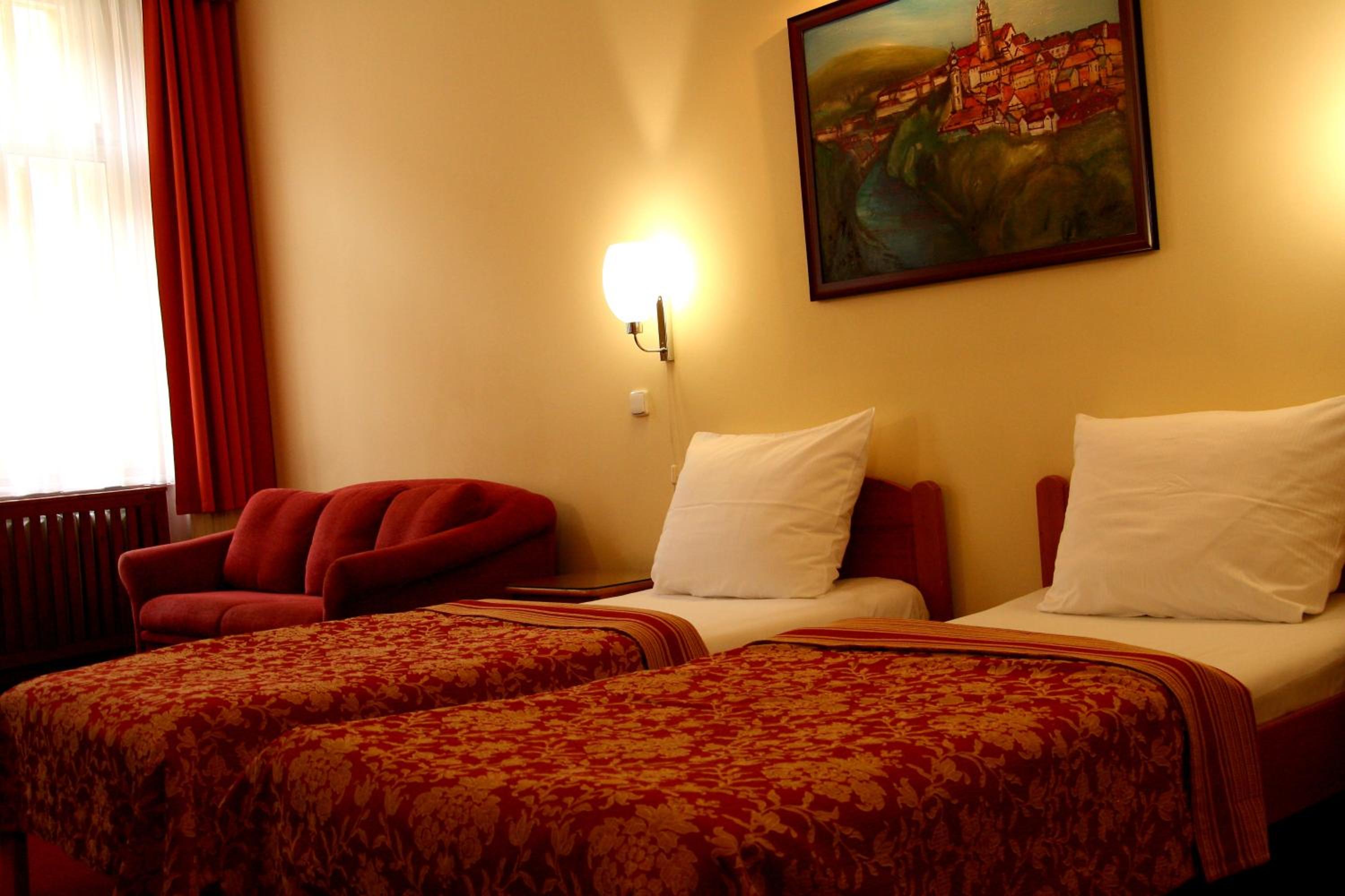 Neodhlučněné pokoje - je slyšet mluvu z vedlejšího pokoje, výhled do protější zdi maličkého dvora (při využití pokoje jen na přespání se dá akceptovat).