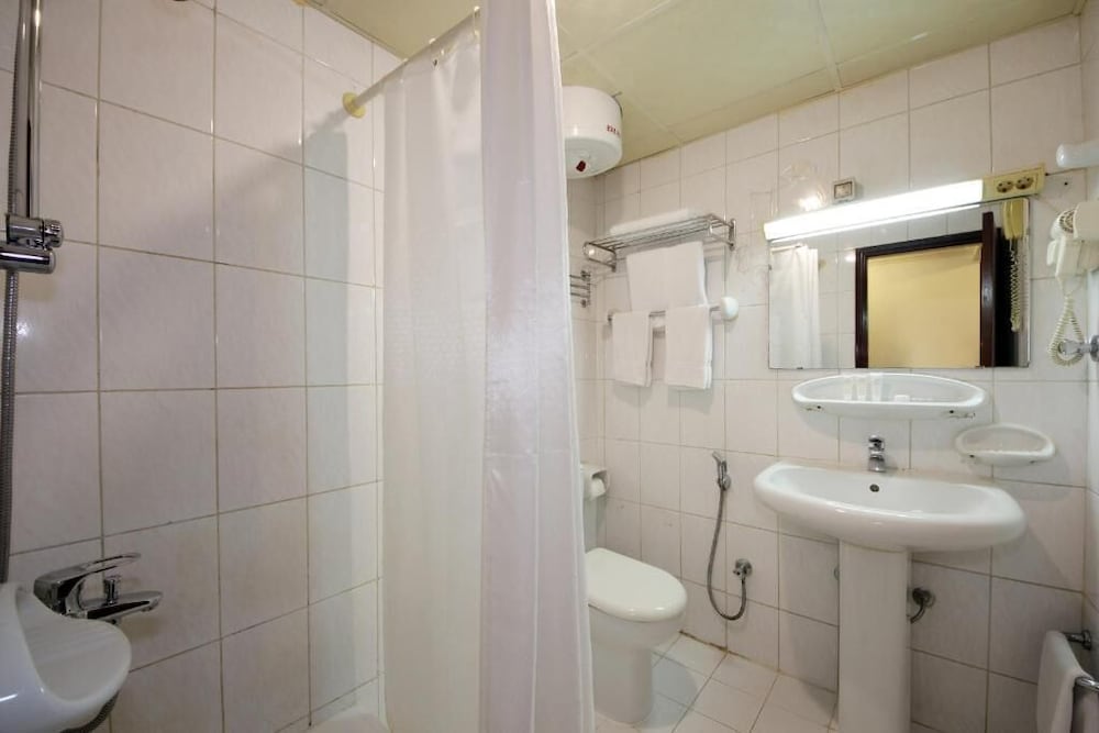 Daarnaast moesten we zelf de hele tijd vragen voor handdoeken, wc-papier en het verschonen van de bedden. Dit gebeurde namelijk niet vanzelf. De hotelkamer zelf was van extreem lage kwaliteit. Het bed had gewoon vlekken erin! Bed was ook super hard en kussen was extreem dun. Mijn tapijt thuis ligt nog beter. Laat me de badkamer niet vergeten. Badkamer was een nachtmerrie. Met een blik leek het alsof de badkamer vol met ontlasting zat. Hele vieze kleur. Er kwam nauwelijks tot geen warm water uit de douche, het was gewoon koud. Daarnaast kwam er extreem weinig water uit de douche. Het is makkelijker om te douchen onder de kraan. Kraan had ook geen warm water. Het douchegordijn zag eruit alsof iemand zijn kont ermee had afgeveegd. Snap ik wel als je geen wc-papier krijgt. Er was een leuk Europees stopcontact, bleek het dat ie het niet deed. Daarnaast lagen alle stopcontacten bijna in Abu Dhabi ergens in de hoeken van de kamer. Je had een ventilator in de douchecabine en er zat meer stof in dan in een volle stofzuigerzak. Verder top hotel👍