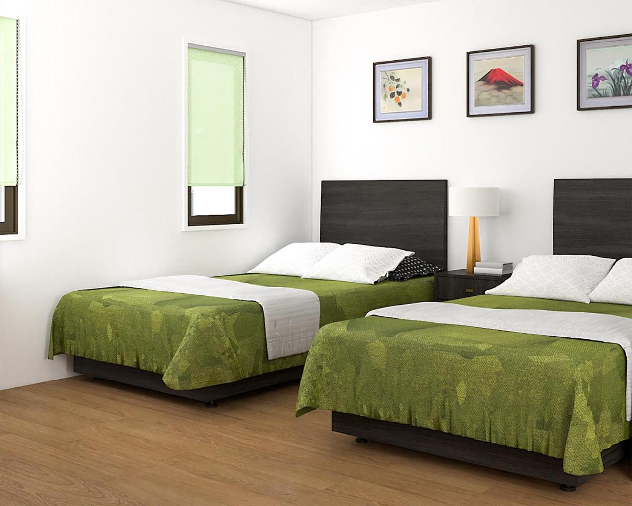 Spacious room with 2 beds, futon/couch, small table, and stool. Private toilet and shower in room (toilet and shower separated). Room also had a mini fridge and microwave. Elevator for guest use. Staff was accommodating. Great location for shopping kappabashi street and not a super crowded neighborhood. Saving on our list of places to stay in Tokyo.