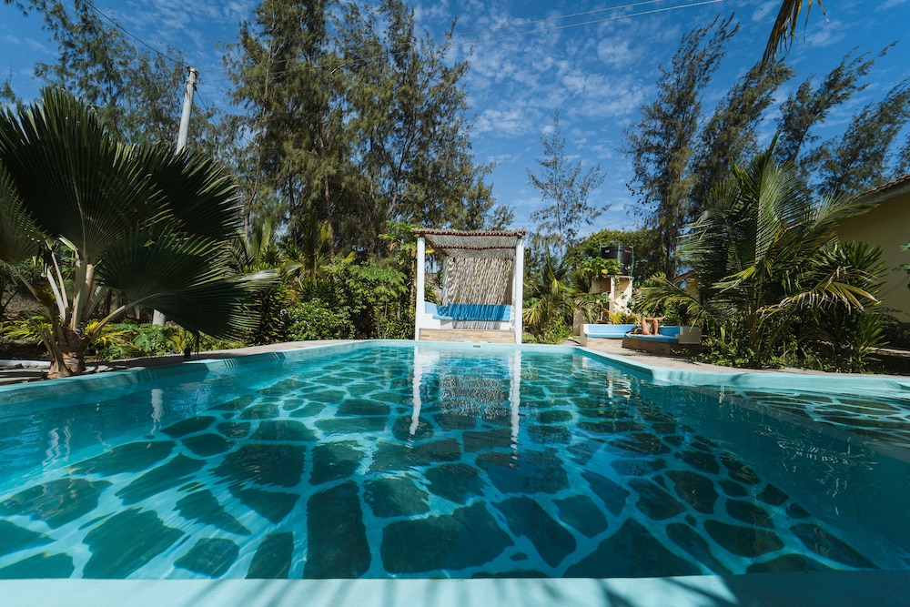 Experience relaxation by the outdoor pool or enjoy the serene views from the terrace and garden at GK Palm Resort Watamu.