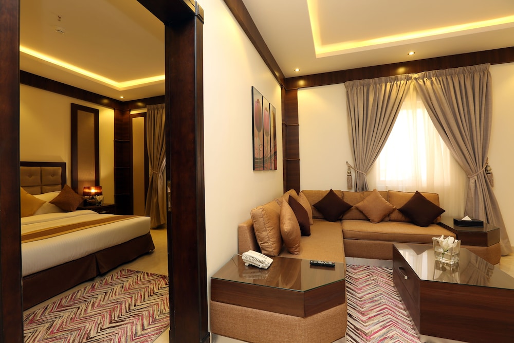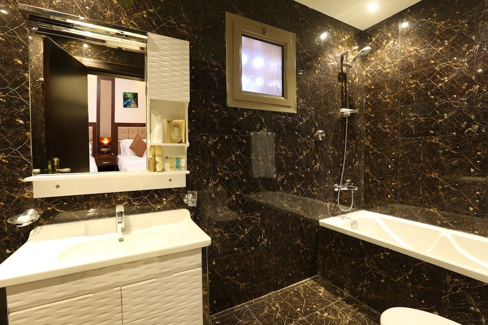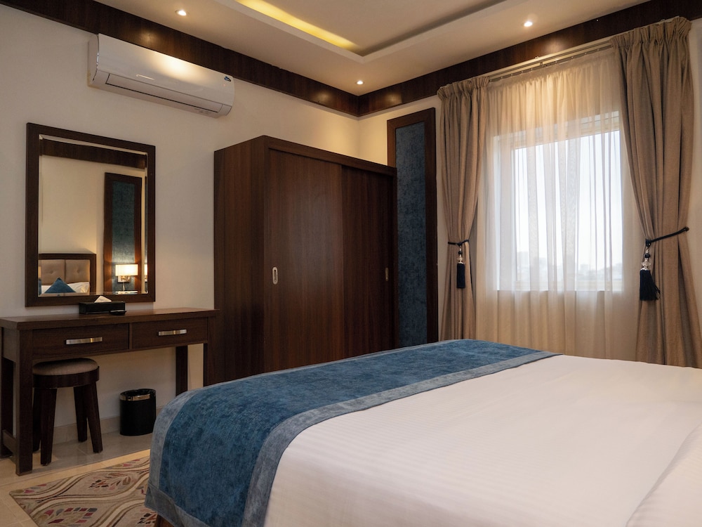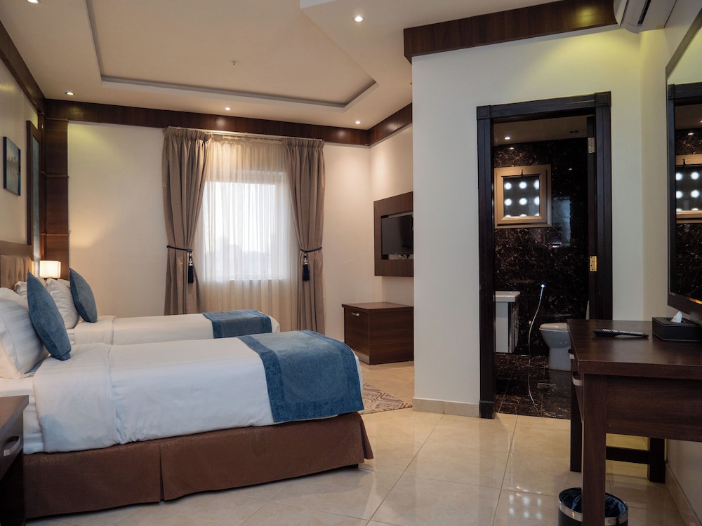 Good value for money. Room was like a good size studio, clean. Bathroom was a bit small but everything needed was available. Didn't see if the hotel had amenities. The immediate area is not great but you have nice coffee and F&B choice 5-7min walk from it. Also, quite central in Riyadh and only 15min drive from Business district. I believe it could be much nicer if they could renovate the big cafe/restaurant downstairs