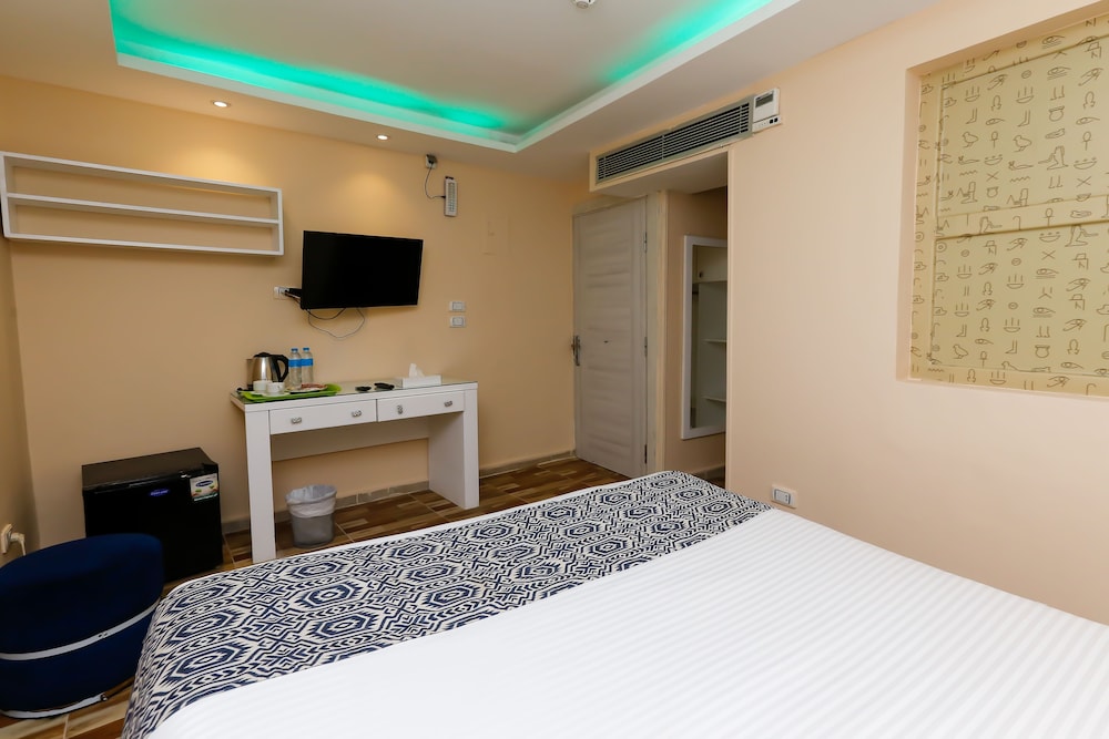 Location was brilliant. Right opposite the pyramids. You can walk there. 700 LE per person for entrance. We got on a horse and buggy to travel round the sites for 1000 LE for both of us. For over an hour. Fantastic value and the driver Mansuer was very informative. He took pictures of us at the pyramids and stopped whilst we took pictures and videos ourselves. Breakfast was excellent. Fridge in the room as well as coffee and tea making facilities. We ate lunch upstairs and a main meal which was both excellent looking out over at the pyramids. The next morning we had breakfast which was again excellent. The water was hot in the bathroom as each had it's own little hot water boiler. Slept well also in the beds. We booked airport transfers through the hotel which was good value.