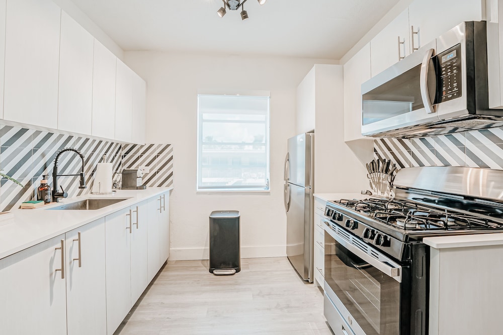 We stayed a few nights over spring break. The building is a little older but is mostly updated. The kitchen and bathroom were very nice. Bed was comfortable. Everything was clean when we arrived. You can walk to the beach in less than 5 minutes. The pool was nice and clean. The gym is small but does have dumbbells and a bench. There is a free trolley system that can get you to most places from south to north beach. You can communicate with the owner on Whatsapp. We had one issue with our keypad and the owner fixed it remotely and right away. Good spot for families. I have no complaints.