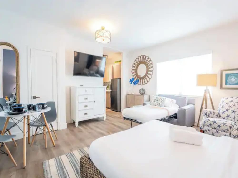 The fist night there was noise outside after 10pm, the A/C units are loud, we had a hard time getting some sleep the first night because of the A/C units going on and off constantly, so we changed the mode the second night and were able to get better sleep, but A/C units need to be updated, for those who want the convenience of designated parking or parking on site, this place will not work for you, parking is on a first comes first goes basis, parking is not easy to find, you can not park outside in just any area, there is an area nearby, but even then it is hard to find parking, but if you plan to walk or take an uber you should be ok, if you have to carry a lot of bags, request an apartment downstairs since there is no elevator, all this is mentioned on their website..also there is a CANCELLATION FEE, modifications and cancellations are treated the same way, I had to modify my trip, so I had to pay for the first night even though we could not make it…just as an FYI