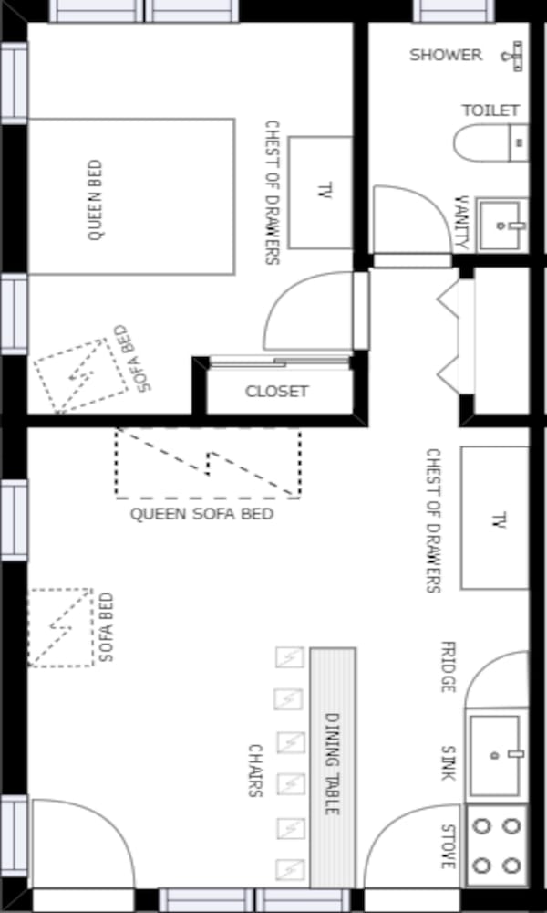 Parking was very difficult. Would end up parking anywhere from 3 to 5 blocks away on the street. There was no hot water throughout the entire unit. TVs did not work whatsoever. Even tried changing the batteries into controller with my own still would not work is just very dingy looking and run down not very kept up with. Would I stay here again only if it is the only option and I have no other choice but to.