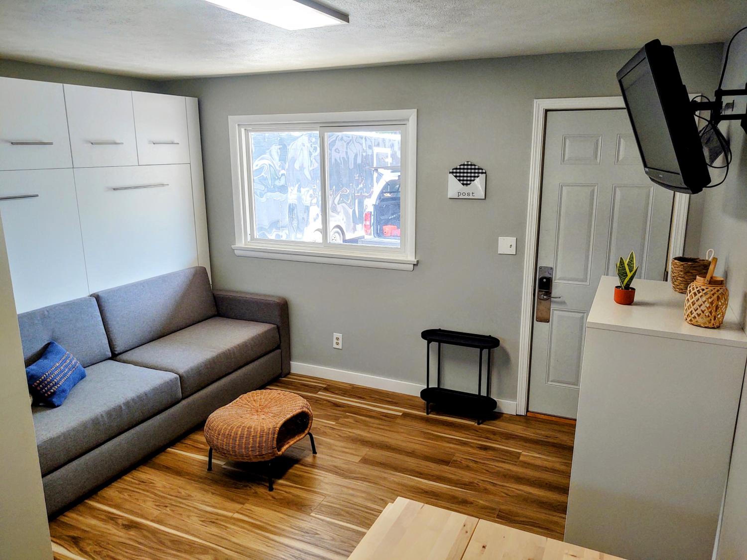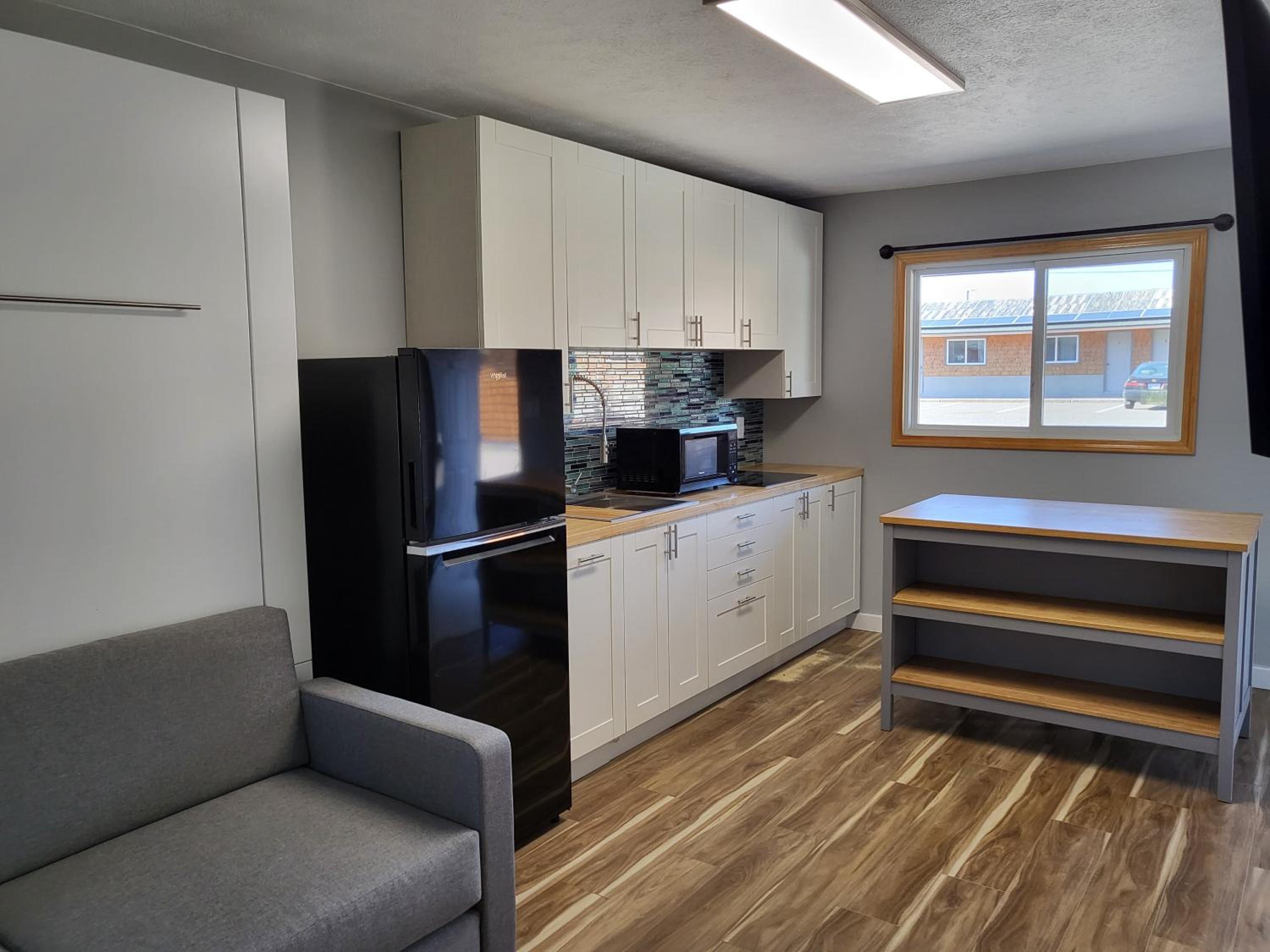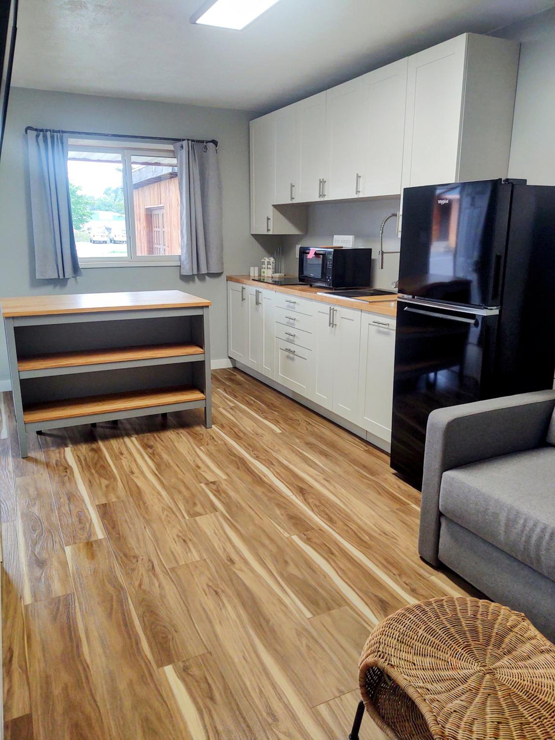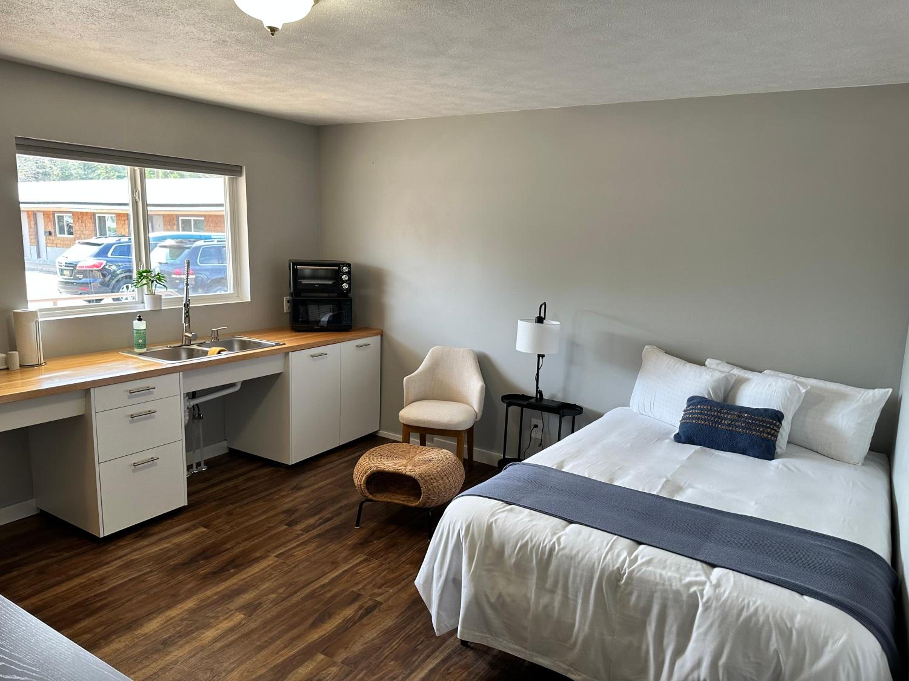 Parking was right in front of the unit; location just 7 minutes to Marquette; the room was very clean with a few nice amenities (free snacks, coffee and tea, shower and shampoo products); bed comfortable with nice linens; reading lamps by both sides of the bed; two small shelving units for storage, a small table and two chairs; keypad “contactless” entry. The “community” concept is a nice one: an island with Adirondack chairs and games in the parking area, and bike storage near the entrance. Two small concerns were readily fixed through a call or email to the manager.