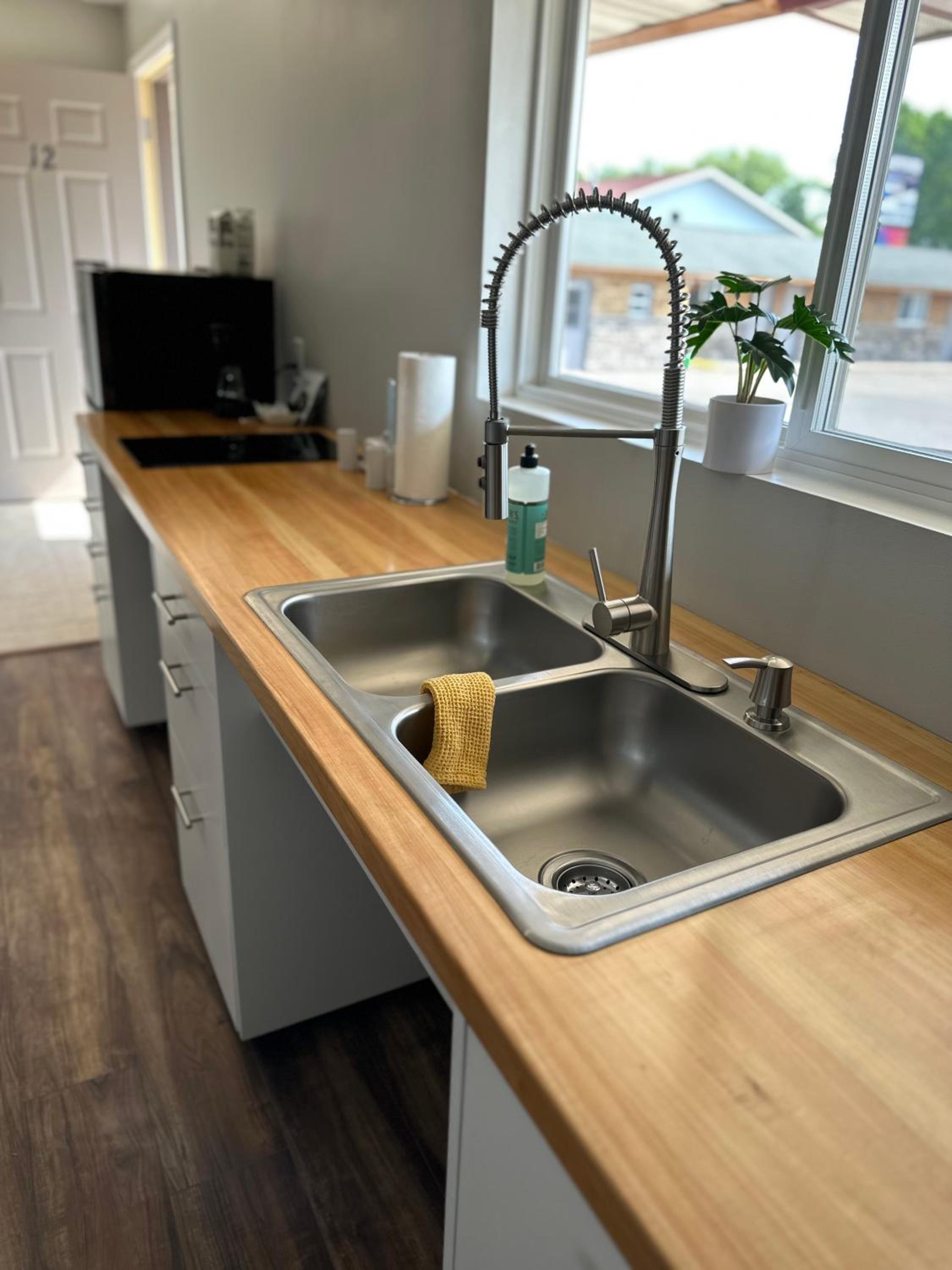 We didn’t really like being between a car wash and an auto parts shop. Additionally being right beside a main highway made things a little noisy at night trying to sleep. However the owners provided black out curtains which was helpful to filter out the lights.