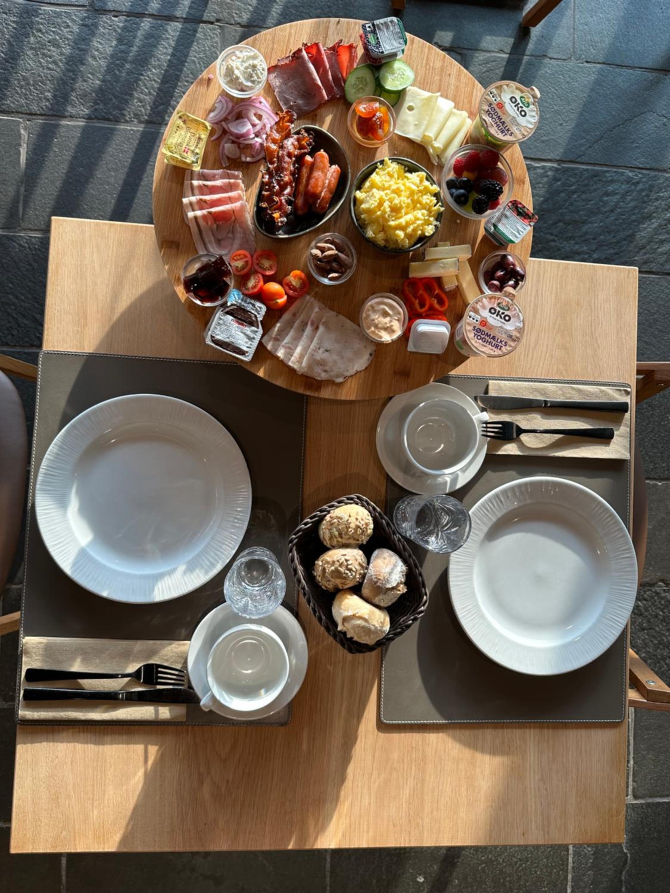 Spændende små huse, smukke omgivelser, dejligt morgenbord - uden at være alt for meget.