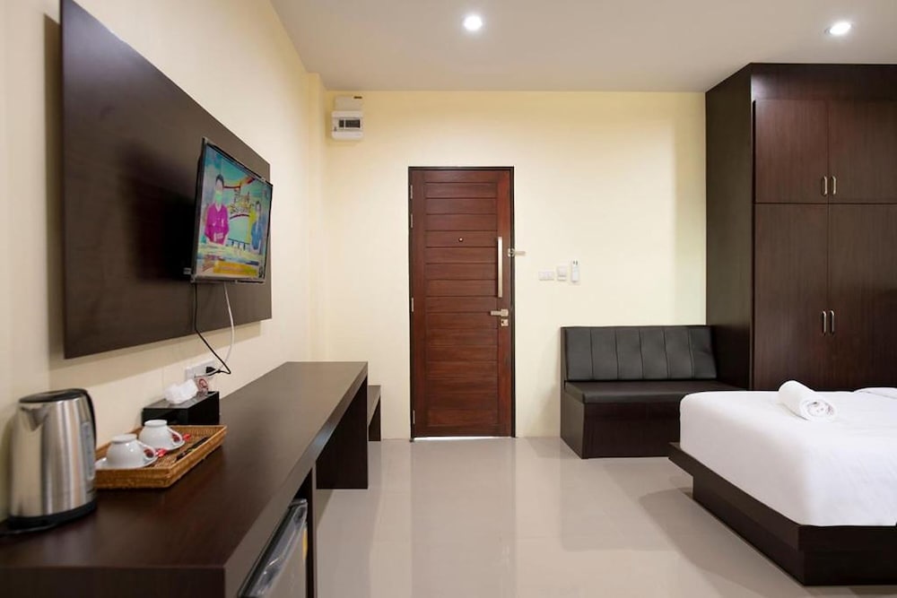 Comfortable Rooms with Kitchenettes Retreat to one of the 15 air-conditioned rooms with kitchenettes at Thip Thip Hotel. Stay entertained with 32-inch LCD TVs and enjoy the complimentary bottled water provided.