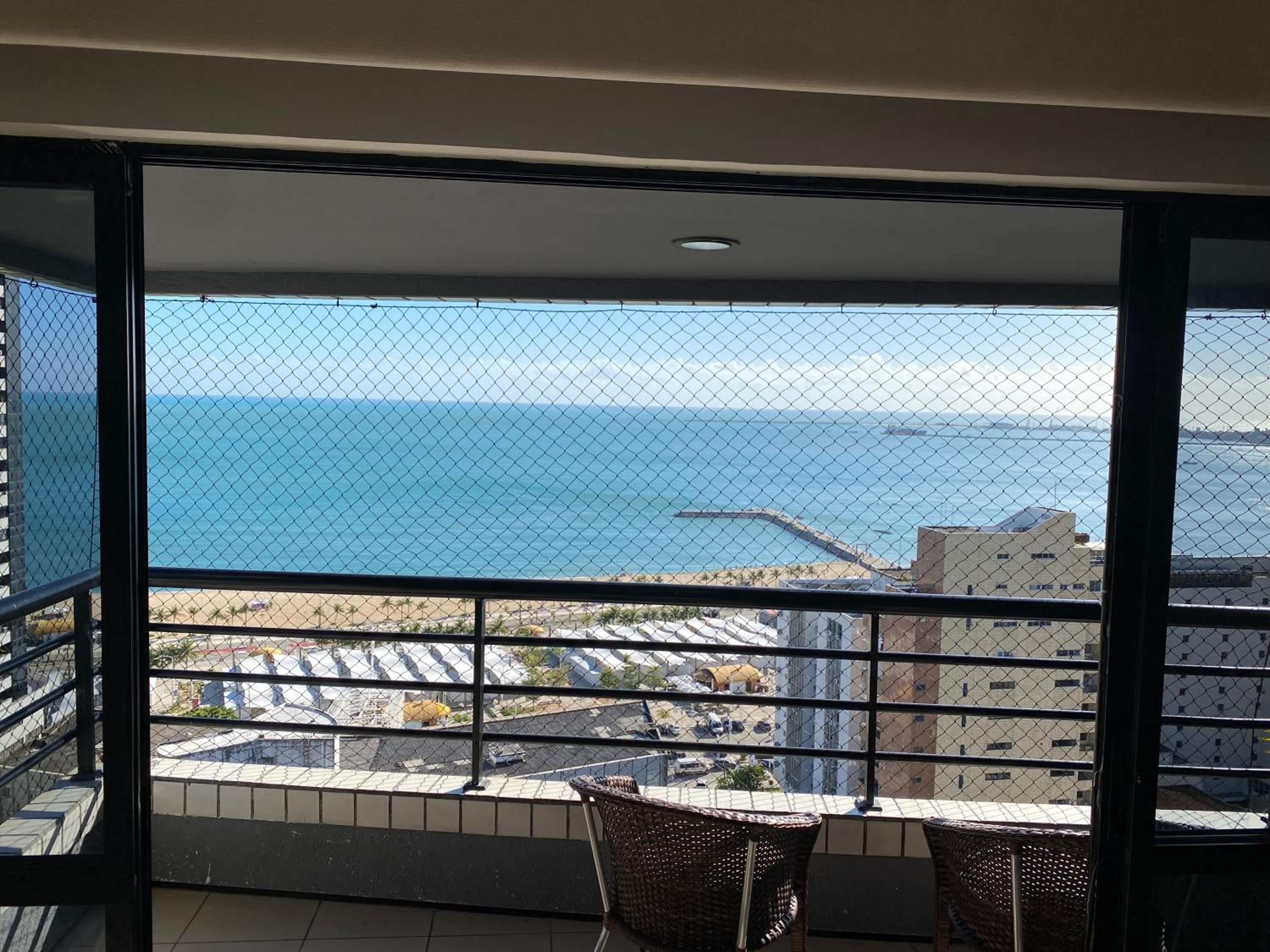 Indulge in breathtaking views of the sea from your own private balcony at Flat vista mar da beira mar. Relax and unwind with the sound of the waves in the background.