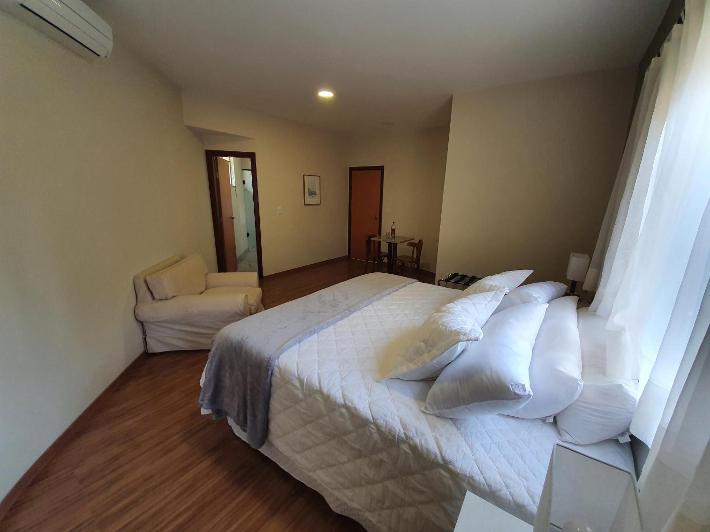 Os quartos são amplos, confortáveis e silenciosos, garantindo um ótimo descanso.