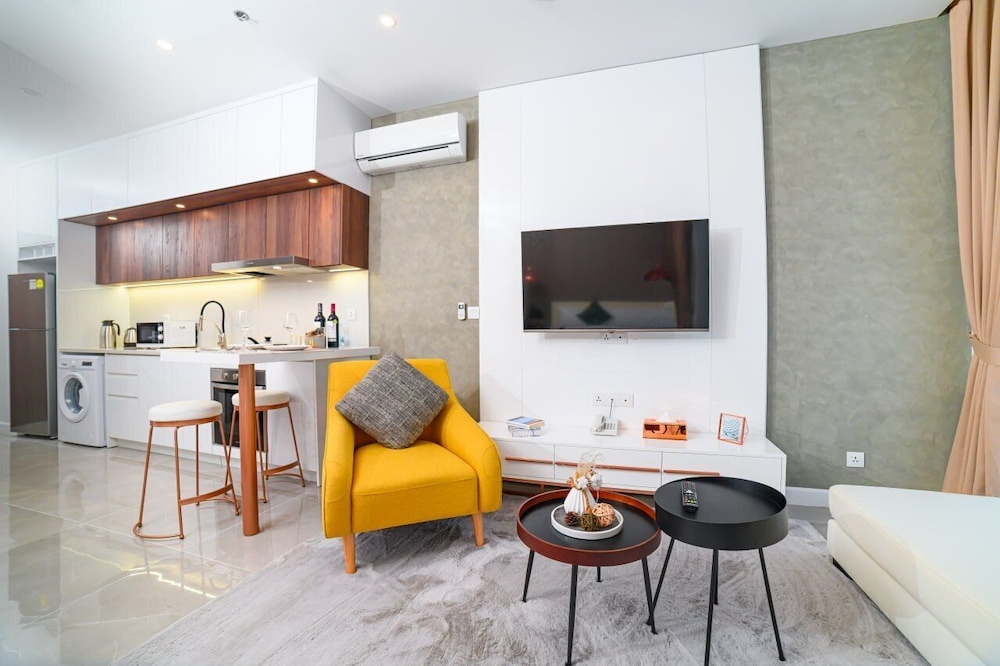 Great hotel, big apartment with everything needed including a washing machine. Beautiful view from the higher floors. I highly recommend !