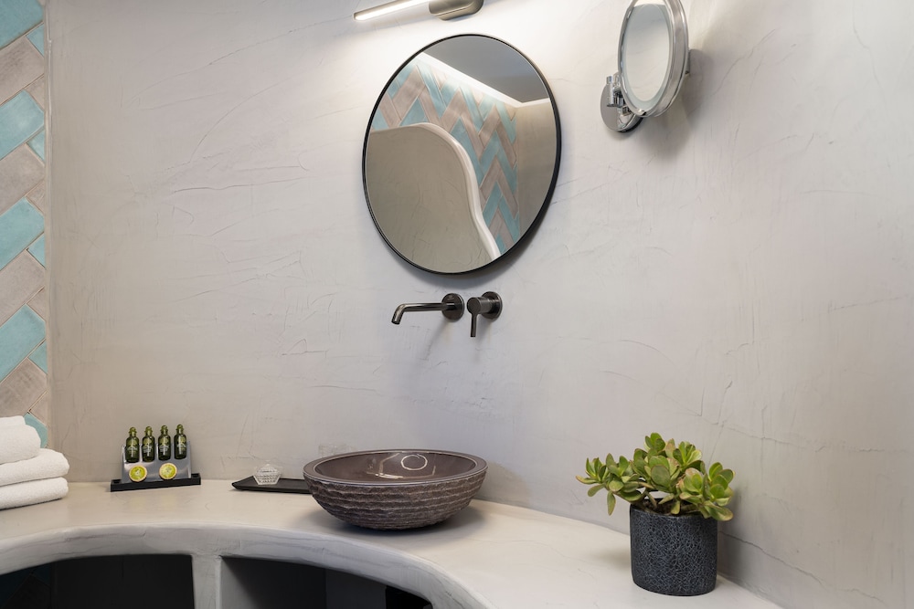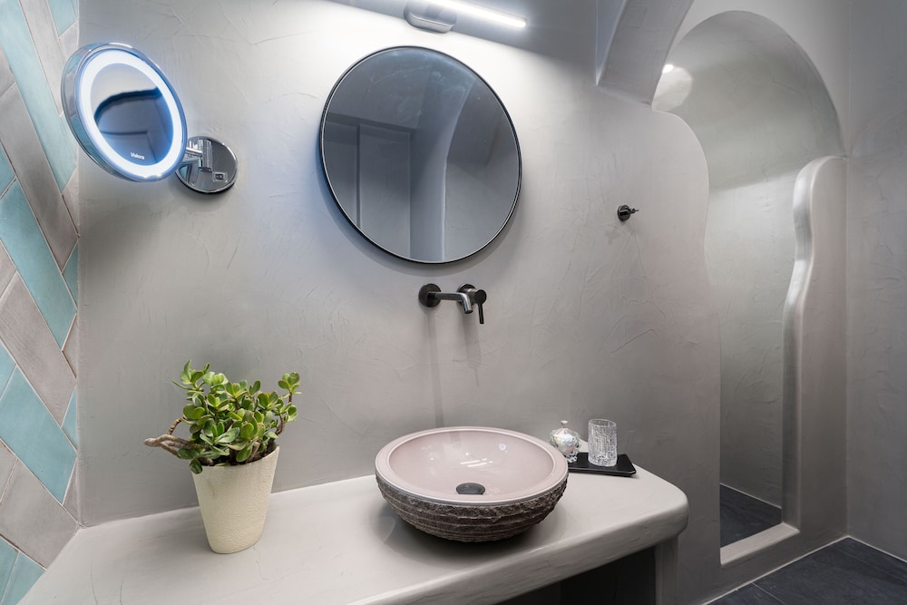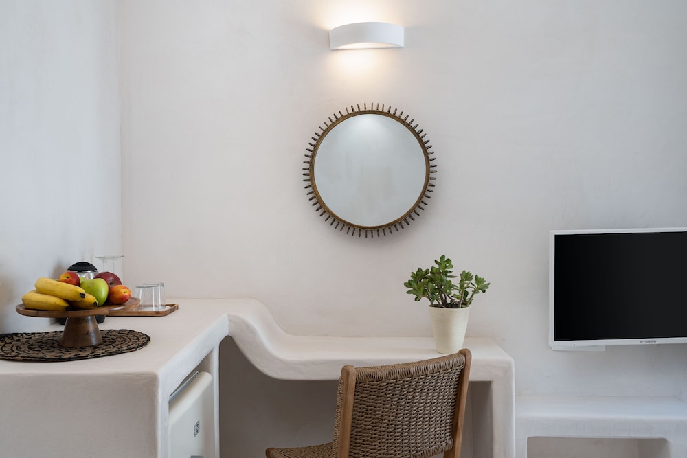 The rooms were a good size and well presented with private spa pools on the terraces which were a very nice touch as was the coffee machine and mini retro fridge in the room. Visitors to Santorini tend to stay no more than a week (often shorter) so the clothes and baggage storage space is a bit limited if you’re planning a longer stay.