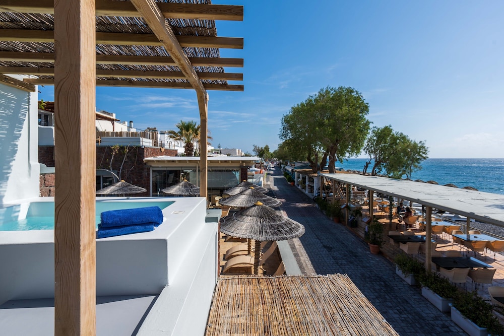 When you stay at THOUSAND STARS SUITES & ROOMS in Santorini, you'll be on the beach, just steps away from Kamari Beach. Ready to experience luxury by the beach? Book now!